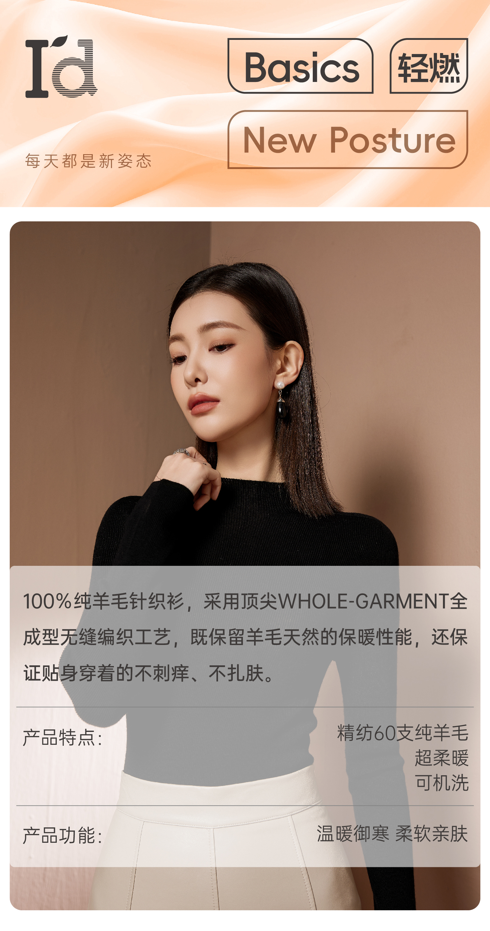 I'd爱帝半高领100%绵羊毛衫女纯色时尚轻奢百搭打底衫