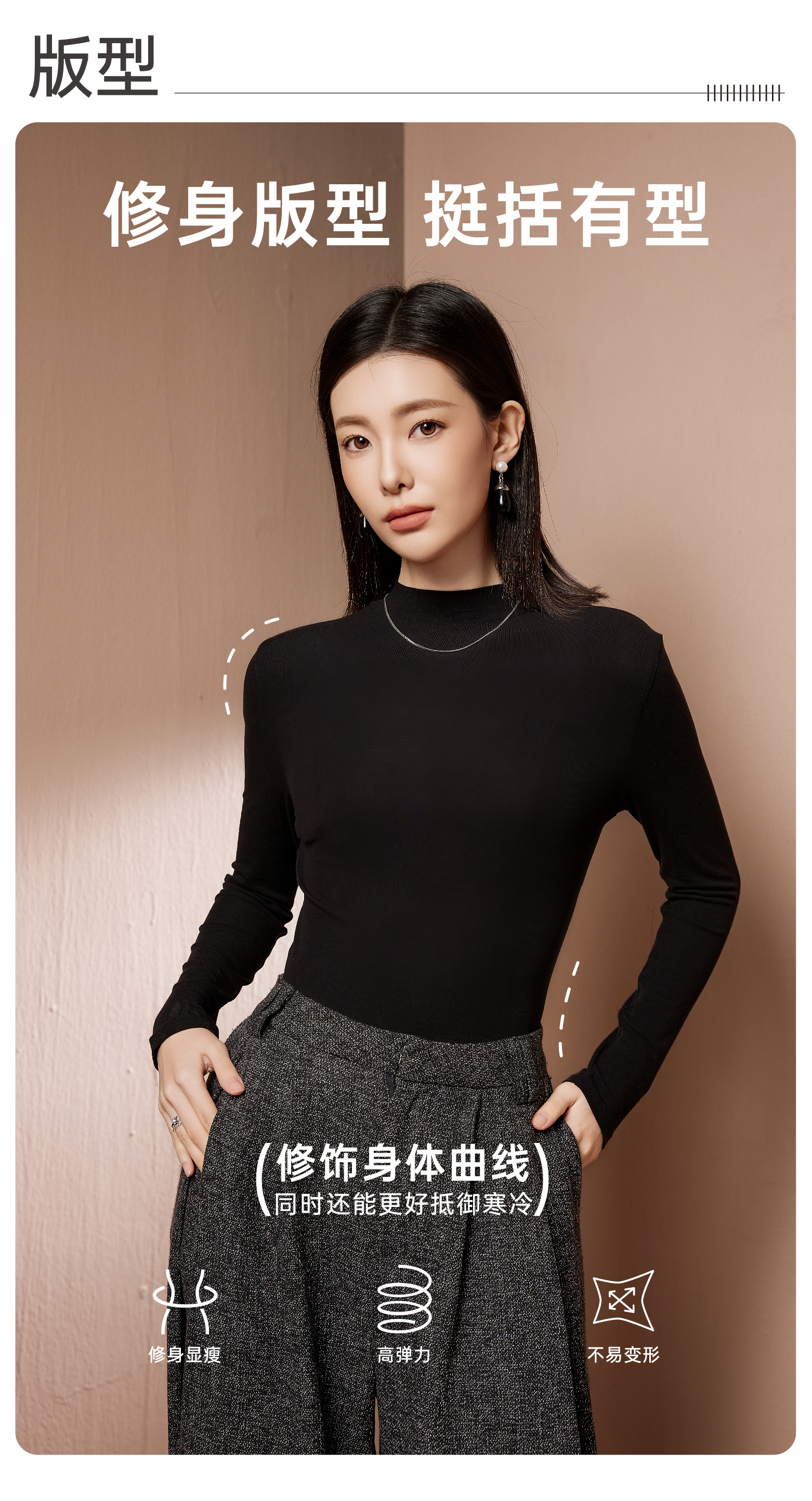 爱帝女式羊绒蚕丝半高领打底衫保暖上衣