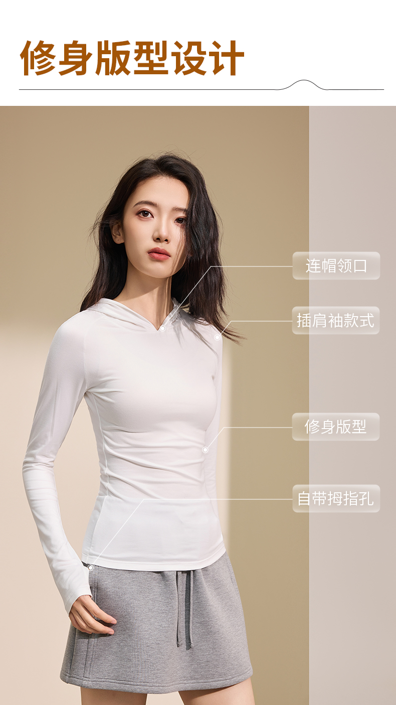 【润肤红石榴】爱帝女式超柔磨毛连帽打底衫