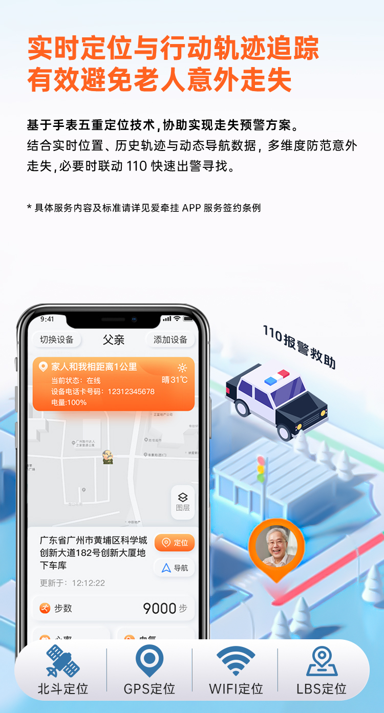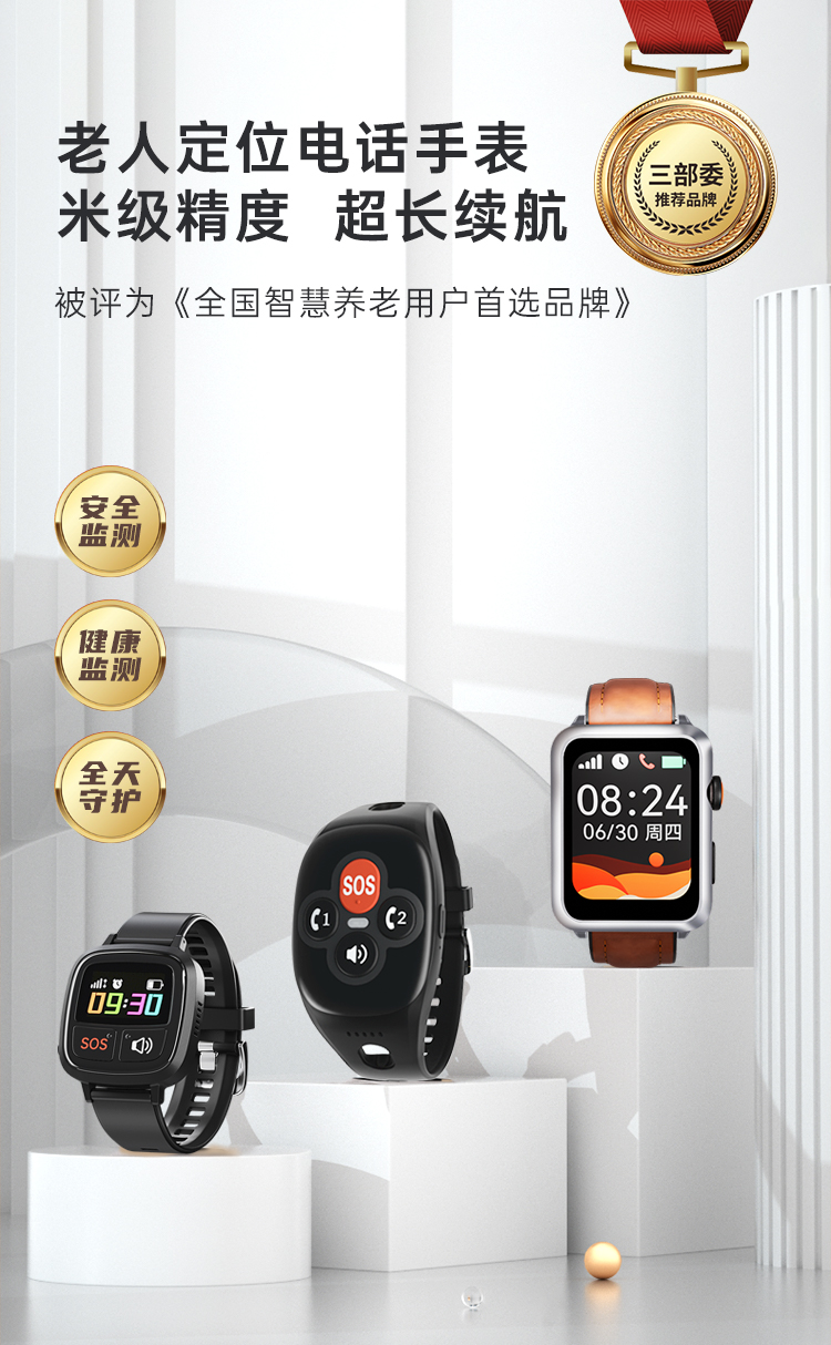 爱牵挂老人电话定位手表定位器+24小时人工呼叫服务 北斗GPS找人防走丢手环防跌倒健康预警一键SOS视频通话