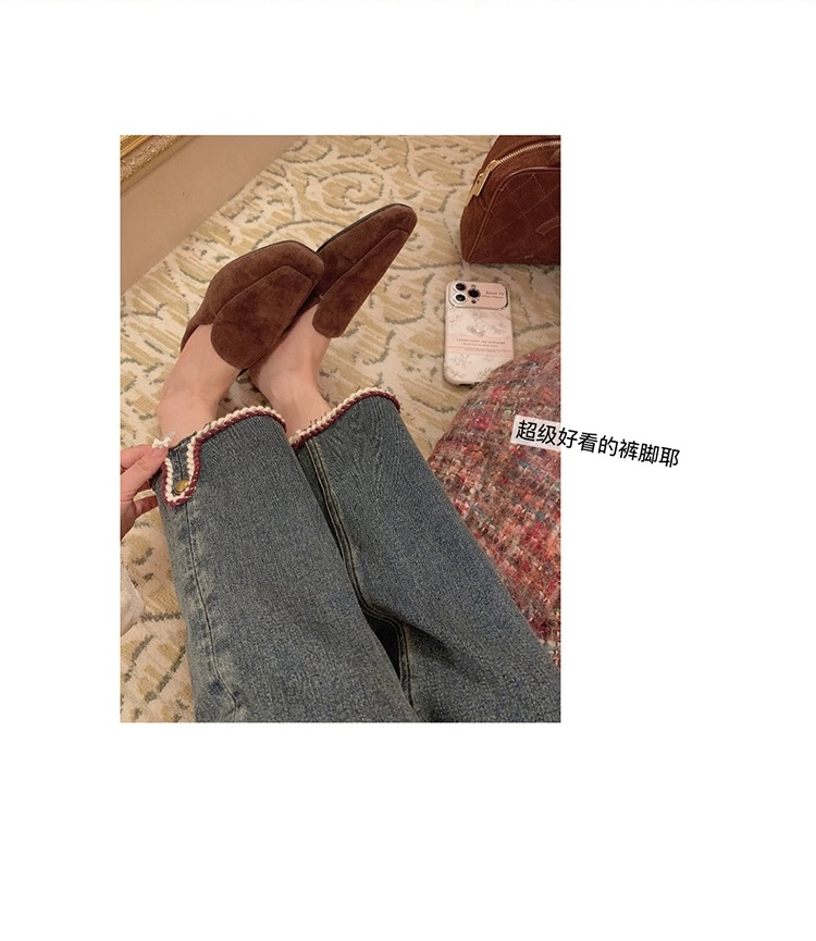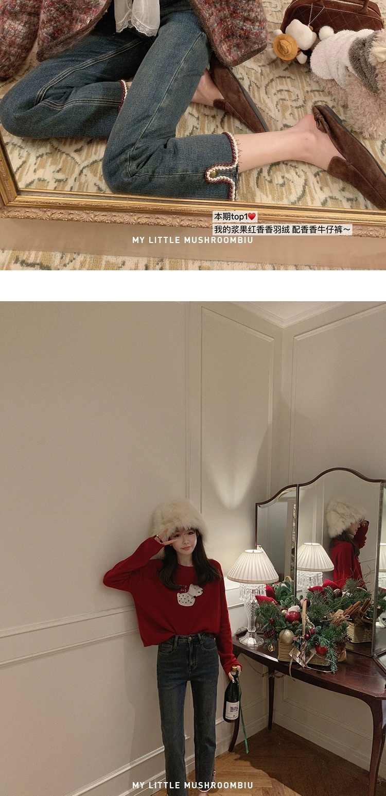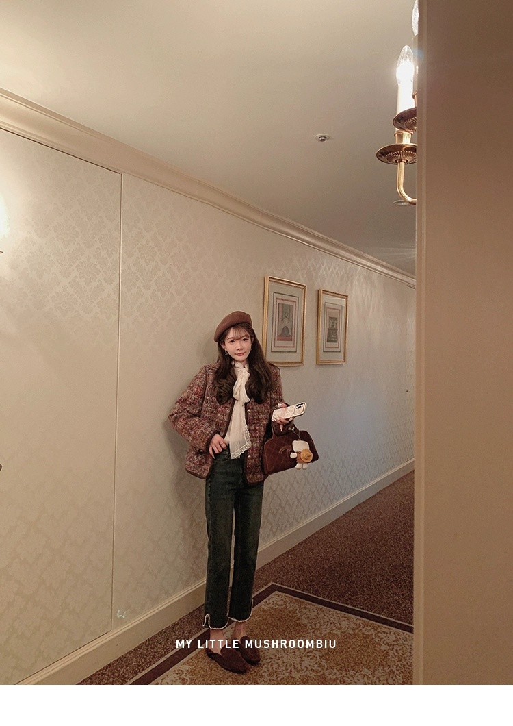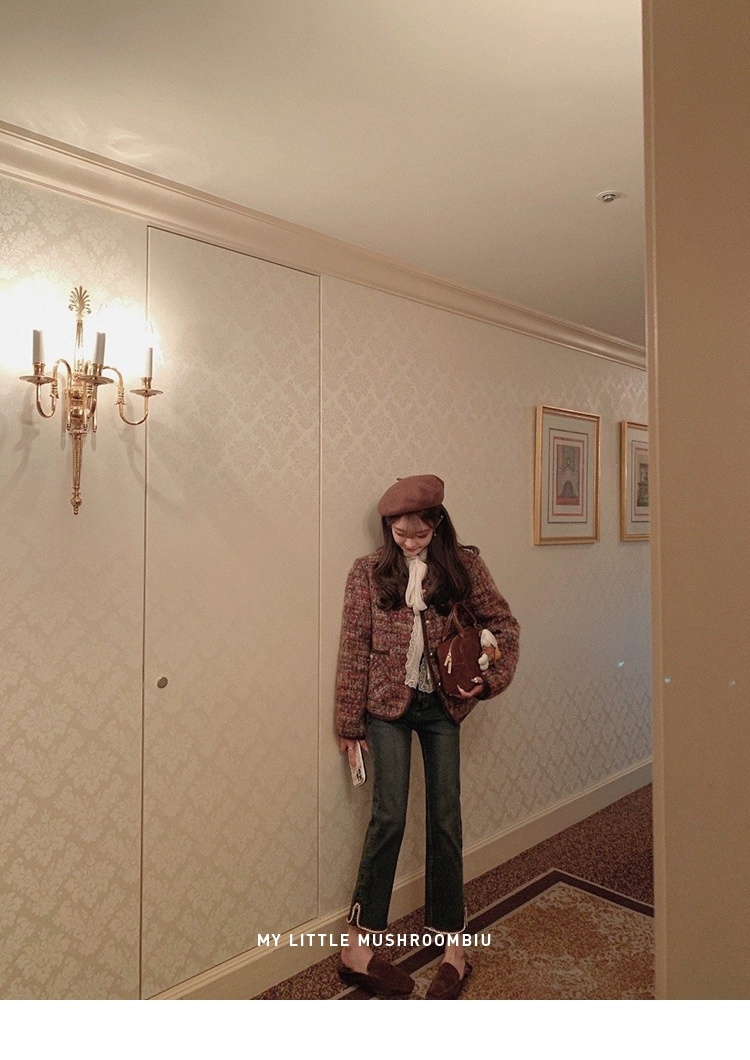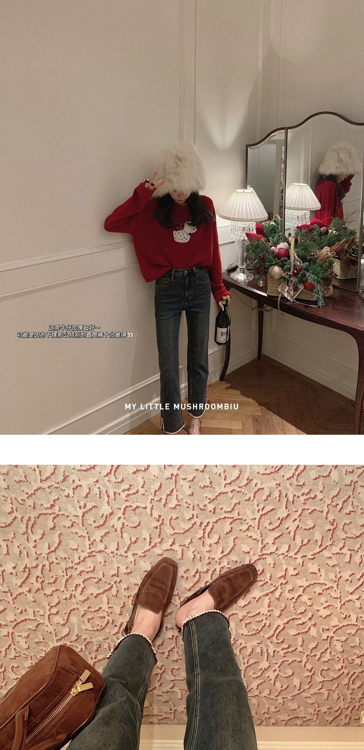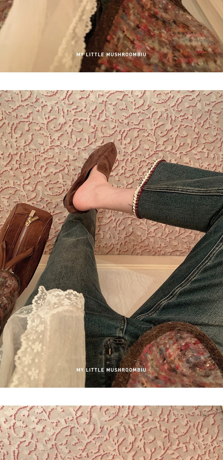 金蘑菇菇 coco rouge香香牛仔裤/复古蓝薄绒中高腰直筒九分休闲裤