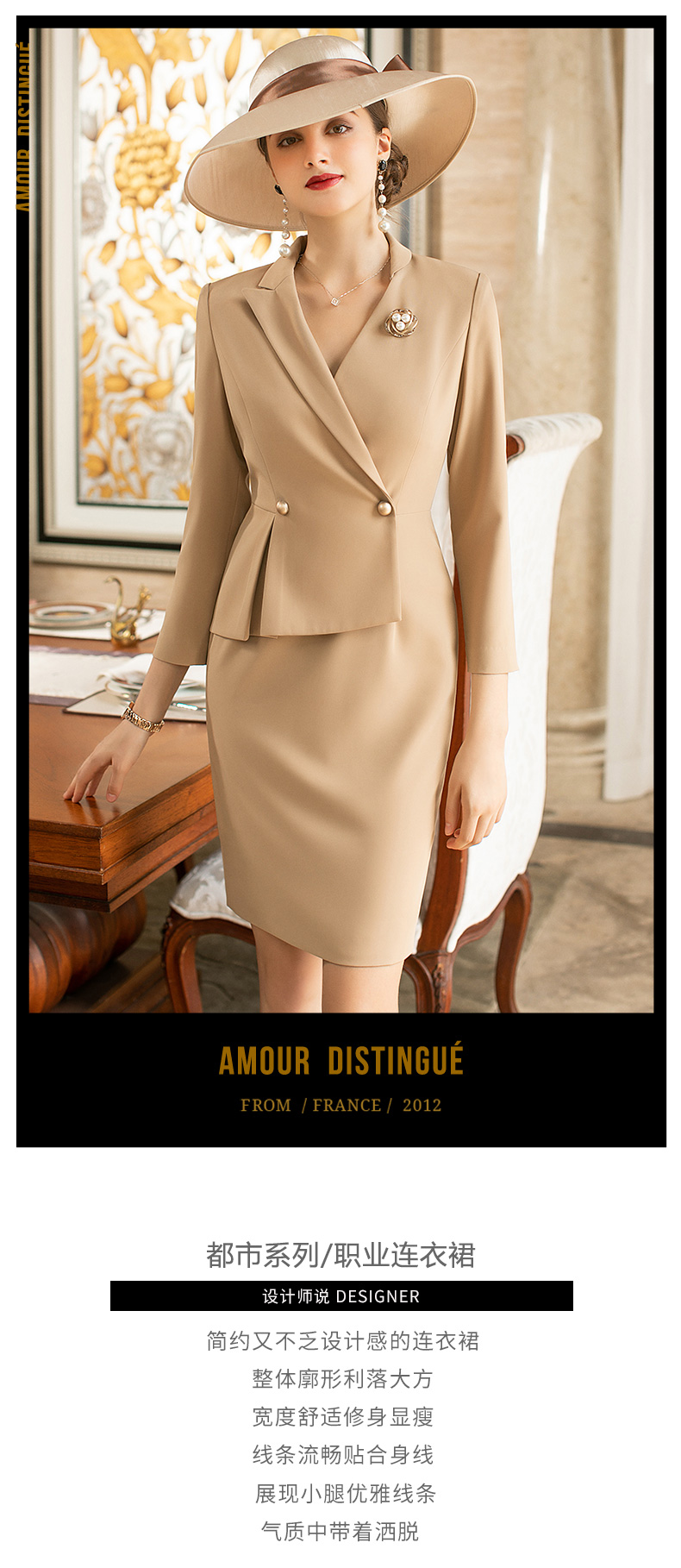 IWY/卡其色女职业气质黑色假两件长袖西装连衣裙Q520-K