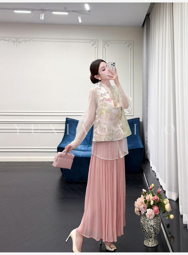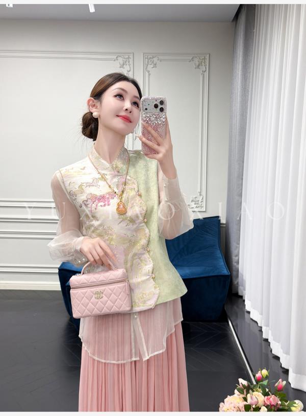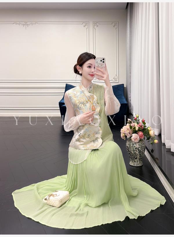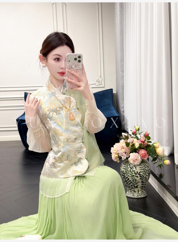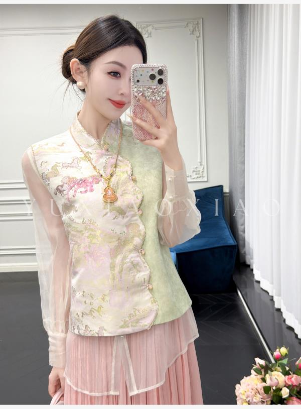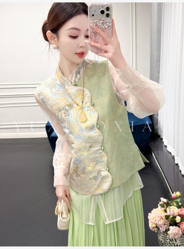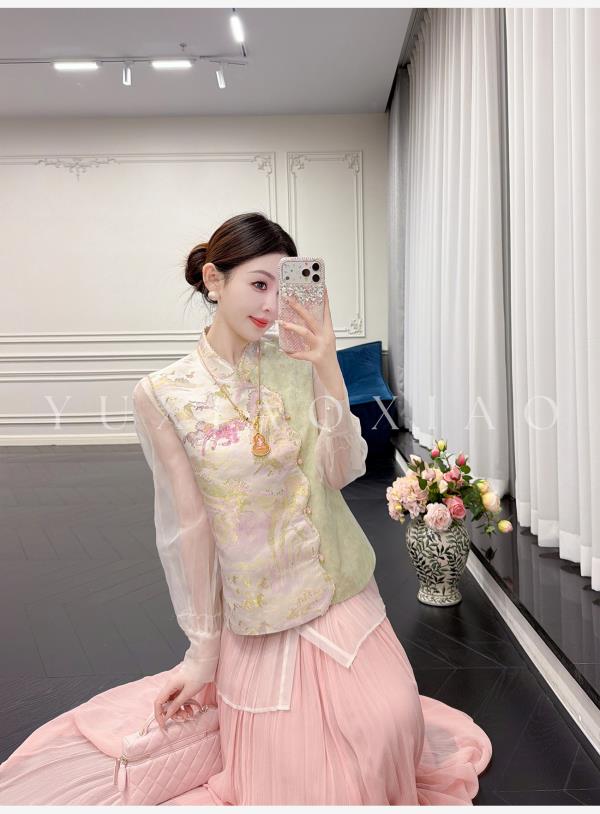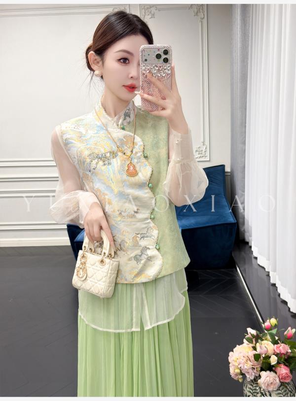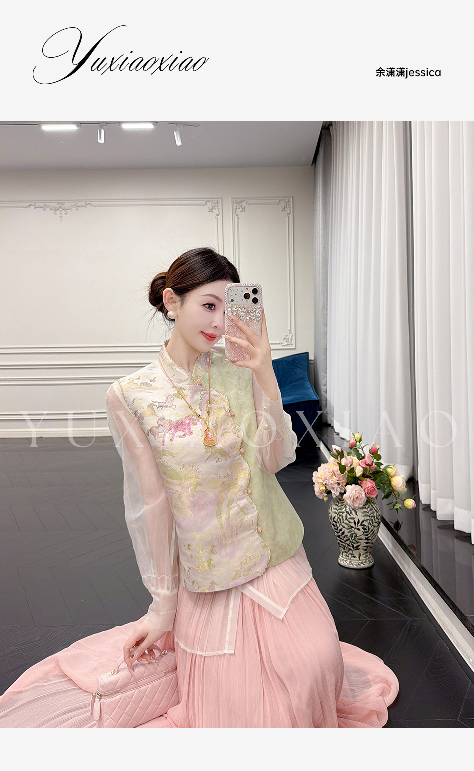 余潇潇【万马江山】新中式轻奢桑蚕丝金丝宋锦撞色拼接立领国风马甲