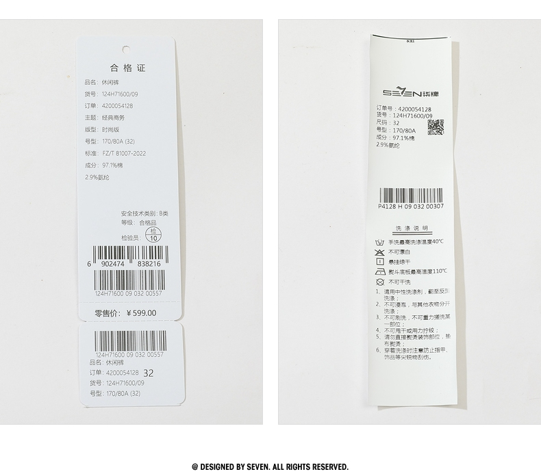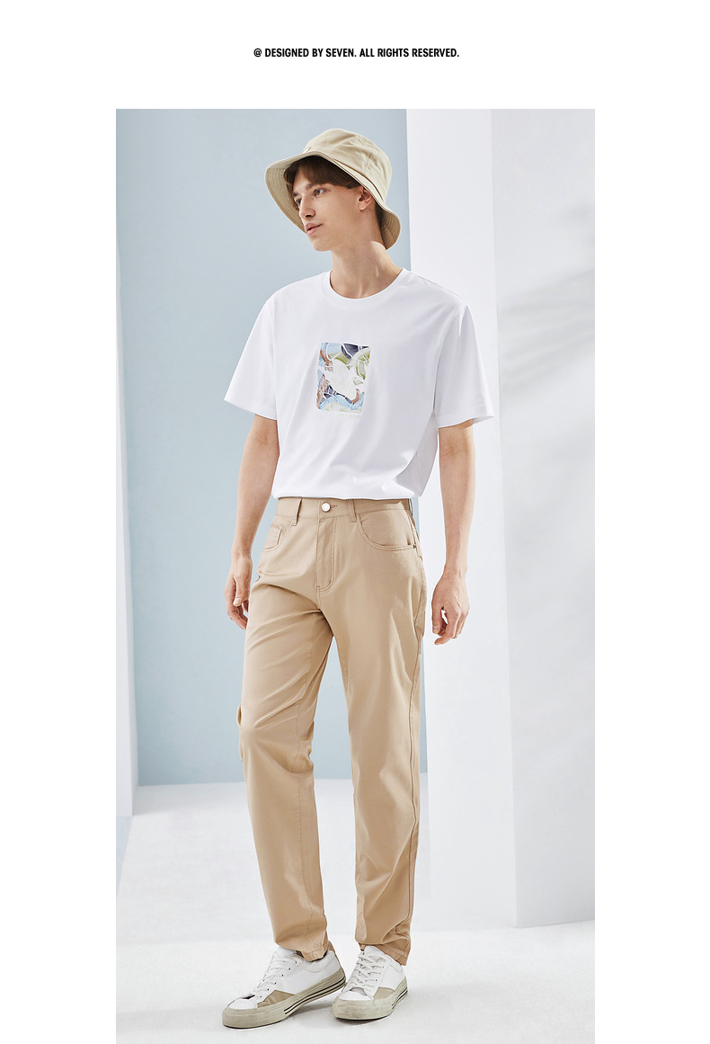 【五袋裤】柒牌休闲裤男士春夏新款时尚休闲字母印花直筒长裤 124H71600