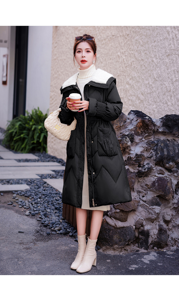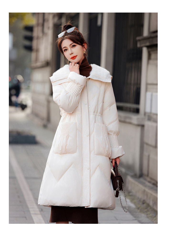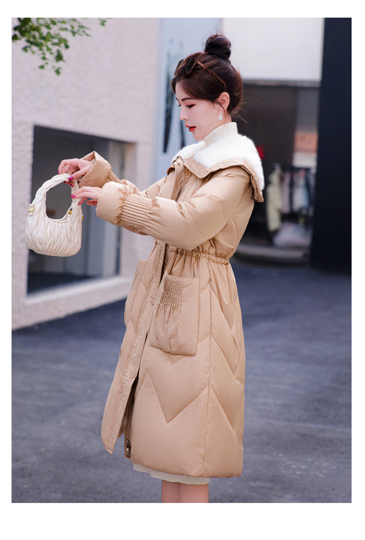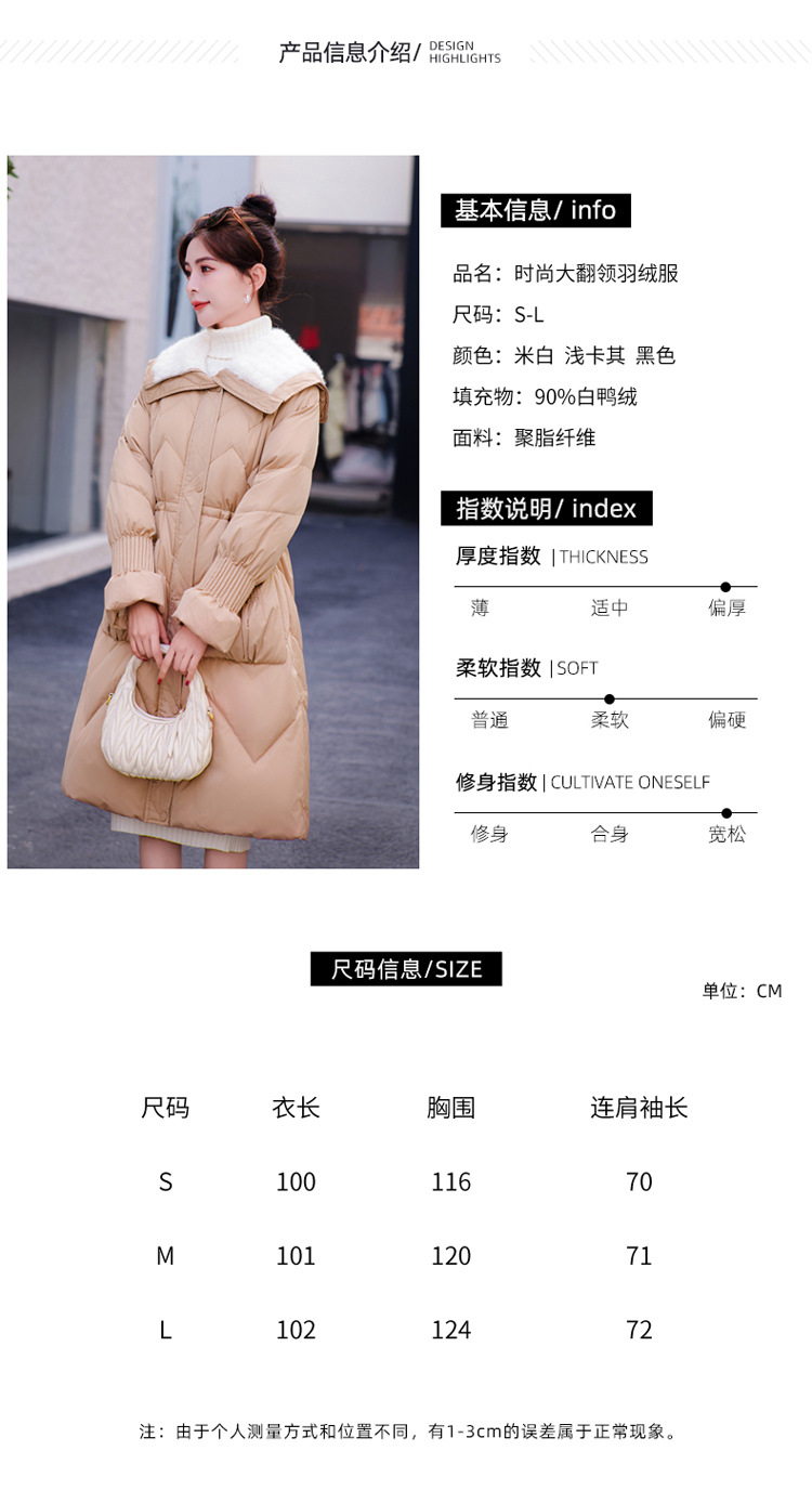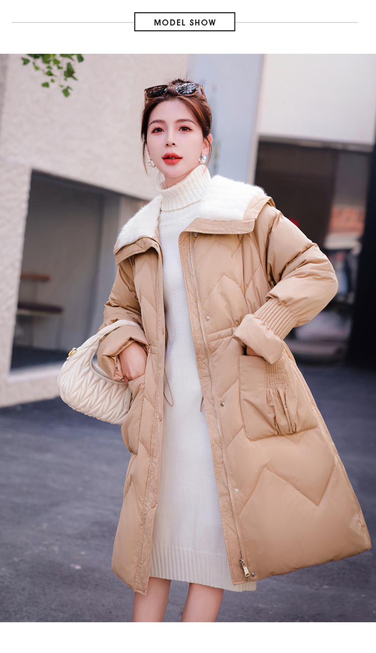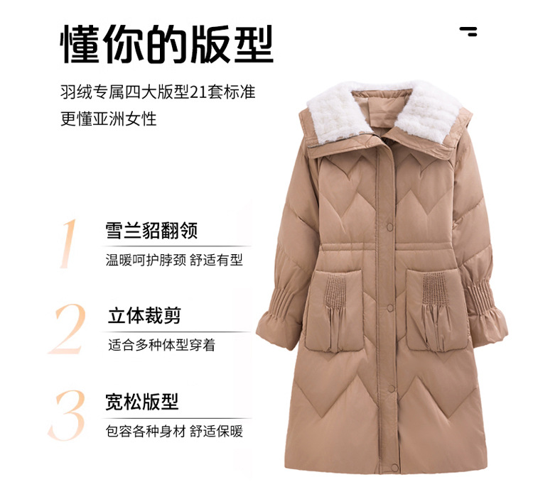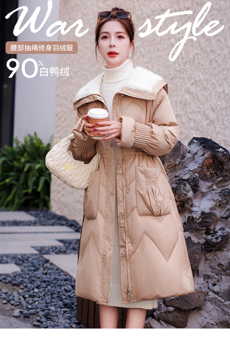 小香风羽绒服女中长款,时尚大翻领收腰加厚保暖羽绒服HR-YJLY8081