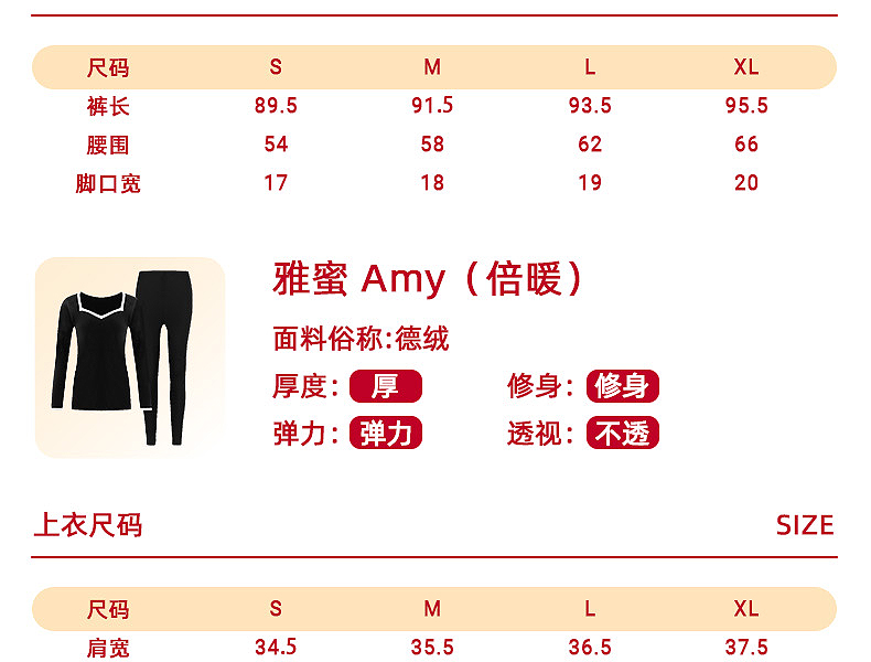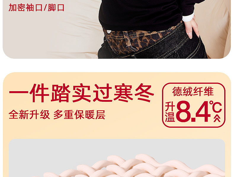 好奇蜜斯德绒保暖内衣女秋衣秋裤加绒加厚发热打底衫24秋冬季套装 雅妮雅蜜蒂雅