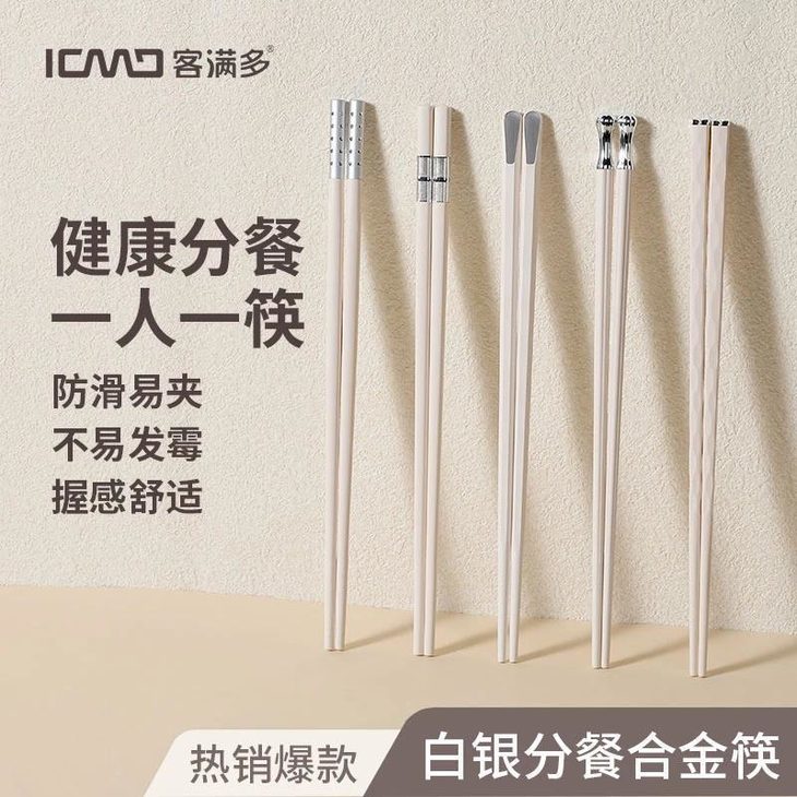 到目前为止,市面上50%以上的合金筷 都是客满多的,在餐饮行业影响力非常大。 不少餐饮大牌都是它的长期合作伙伴 你去商场吃饭,几乎店里的筷子都是它们家的。 因为外面的餐饮更加需要这种抗菌筷子 大家懂的都懂!