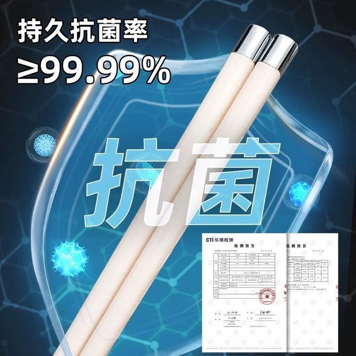 而今天推荐的这款抗菌合金筷 是由玻璃纤维、高分子材料 外加银离子制作而成的。 这种材料硬度密度都超高 耐磨耐用耐高温,还不会滋生细菌和霉菌。