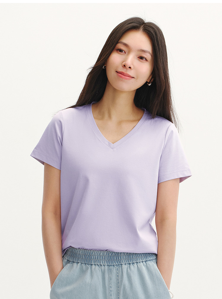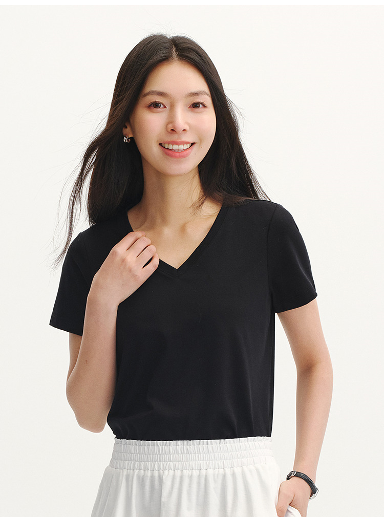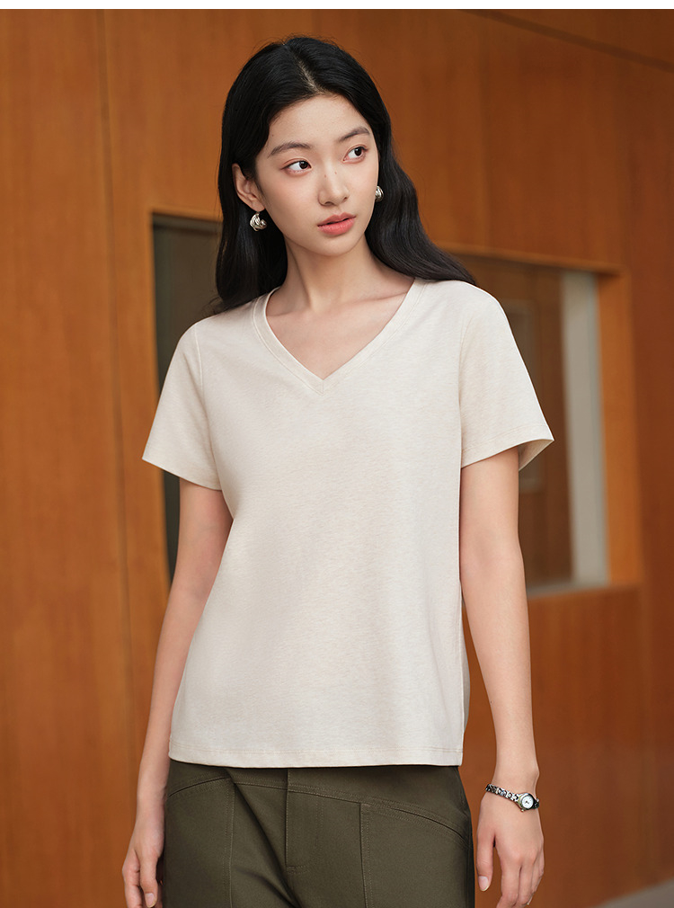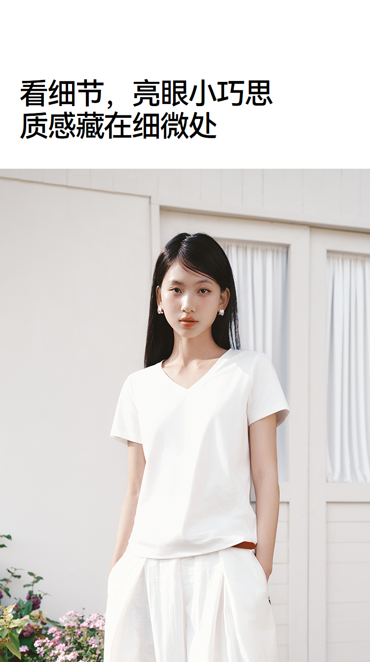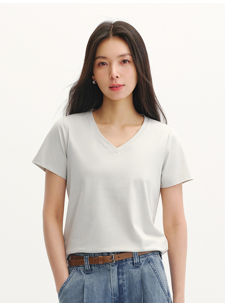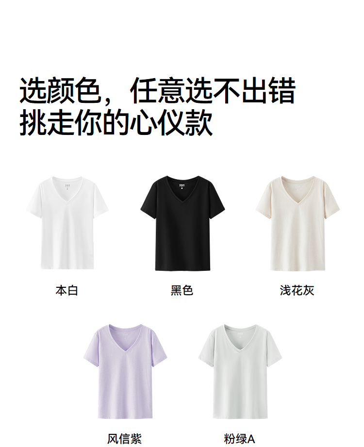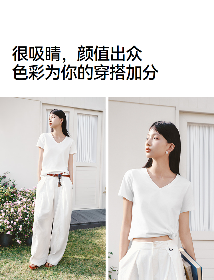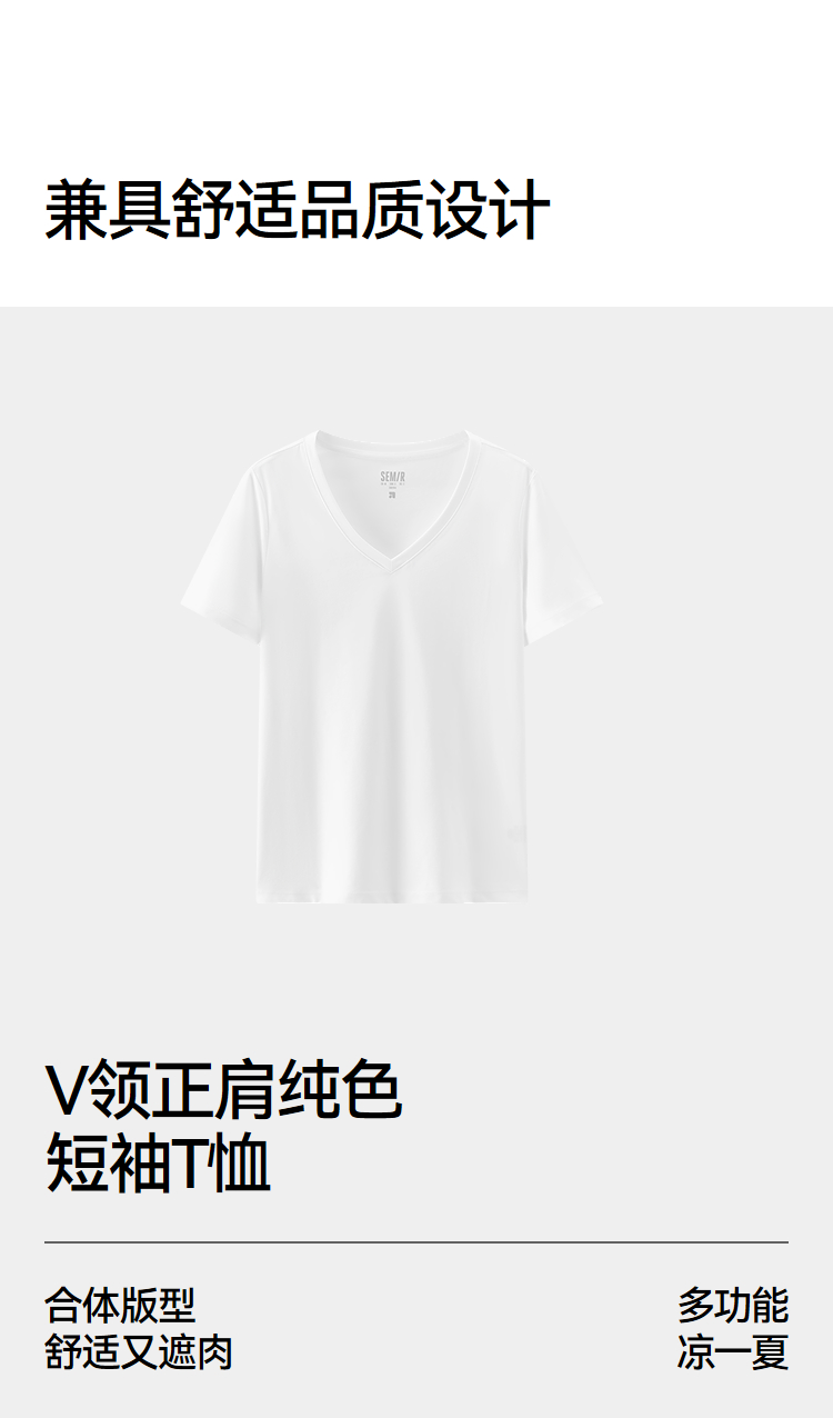 凉感T|森马短袖T恤女夏纯色V领正肩衣服吸湿速干抑菌2026新款上衣