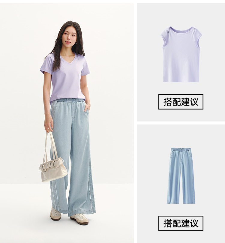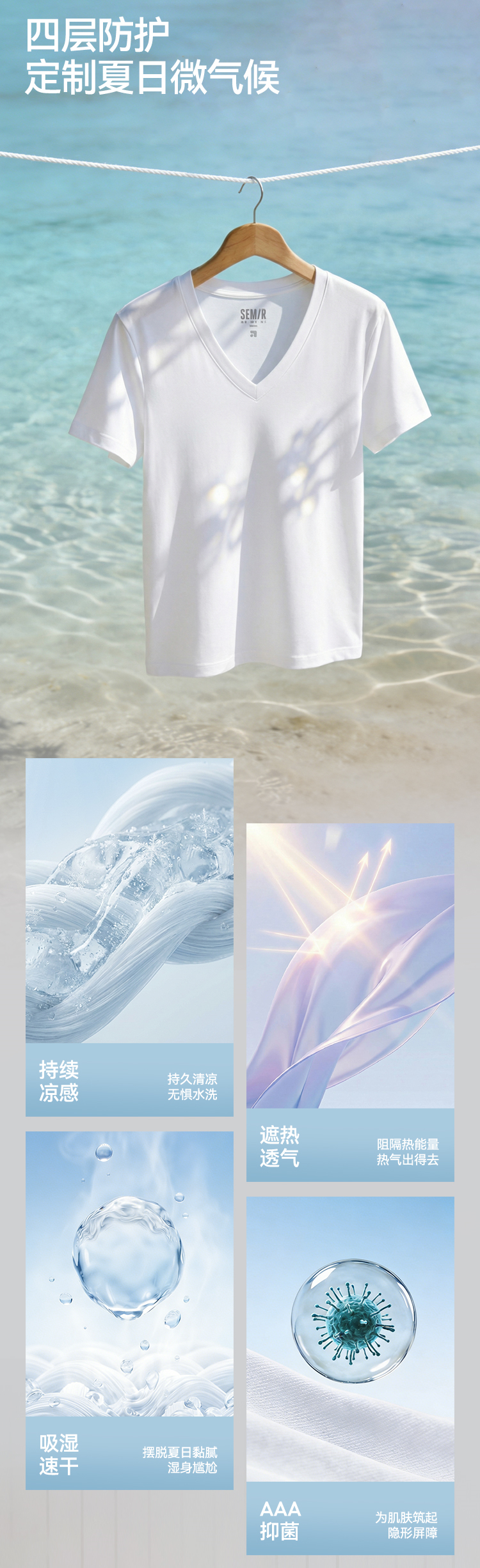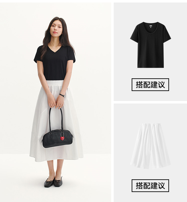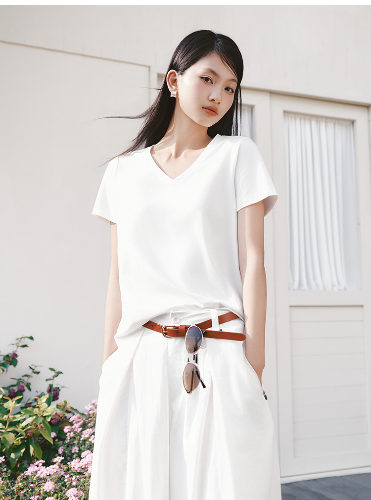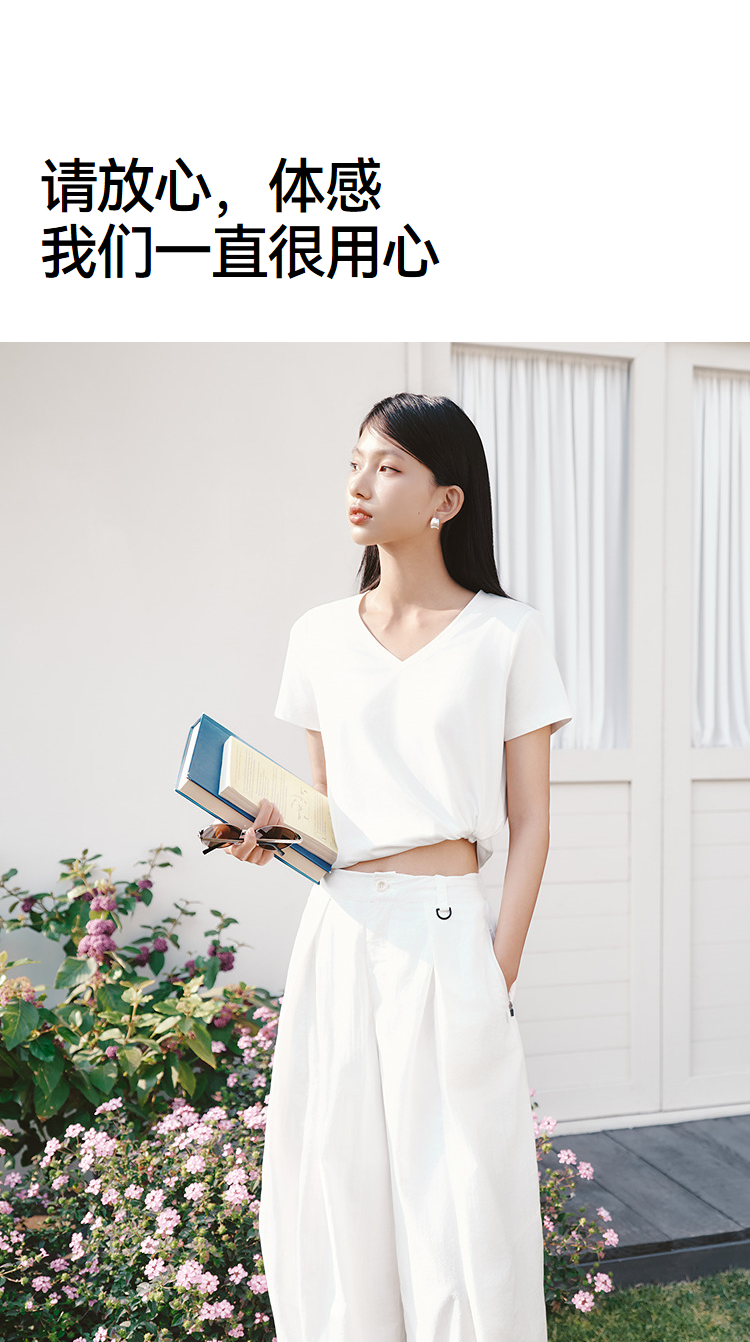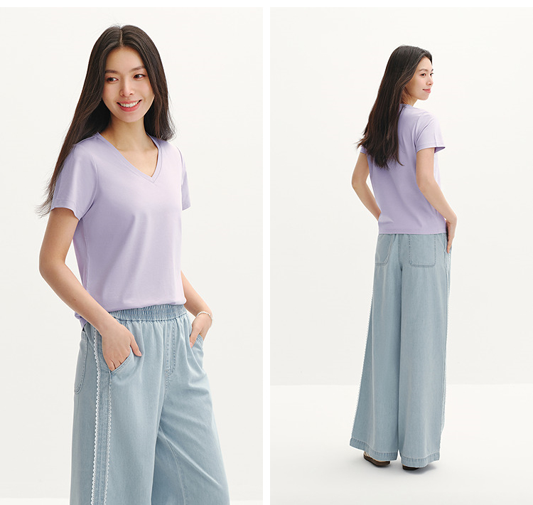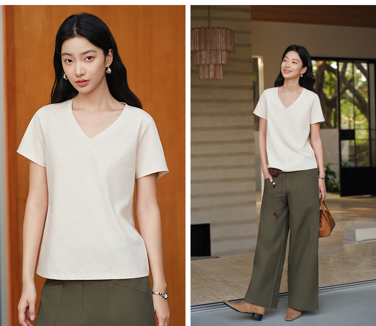 凉感T|森马短袖T恤女夏纯色V领正肩衣服吸湿速干抑菌2026新款上衣