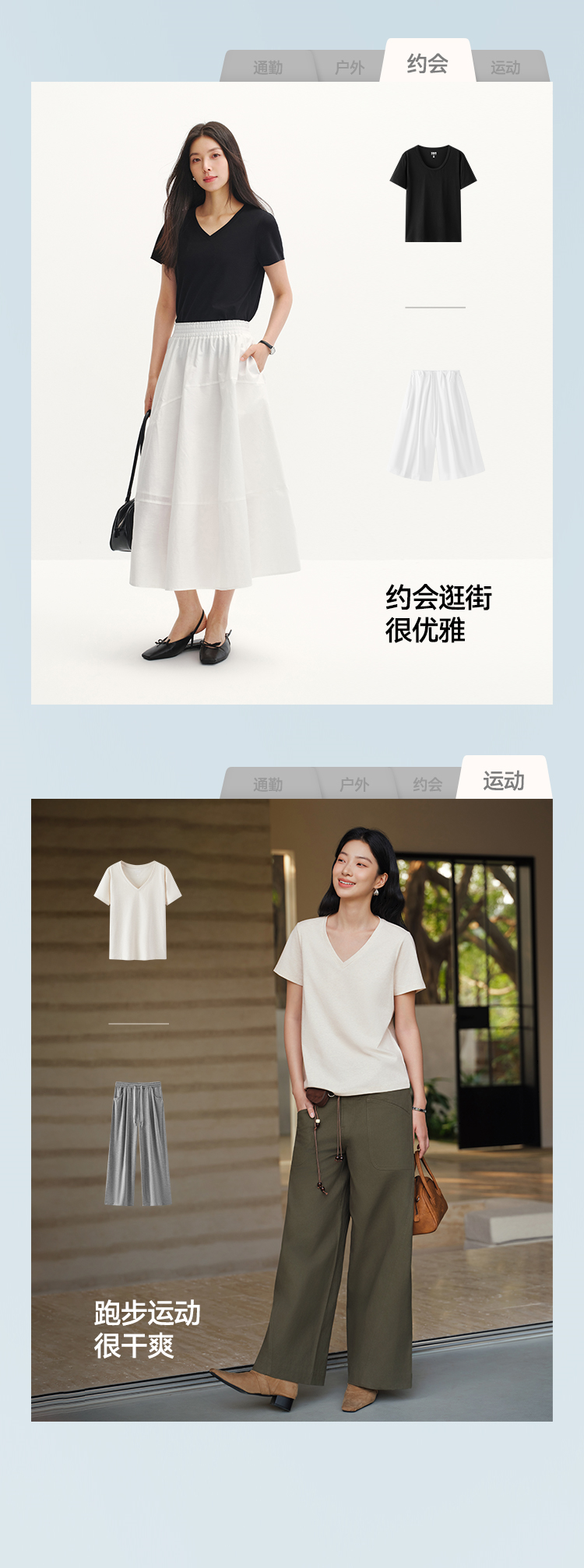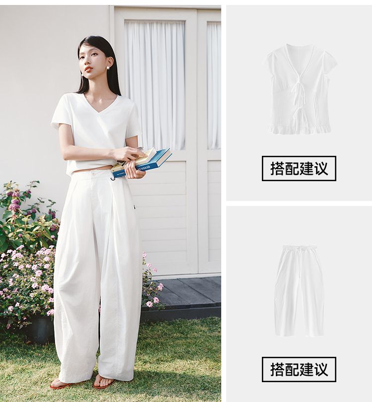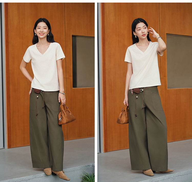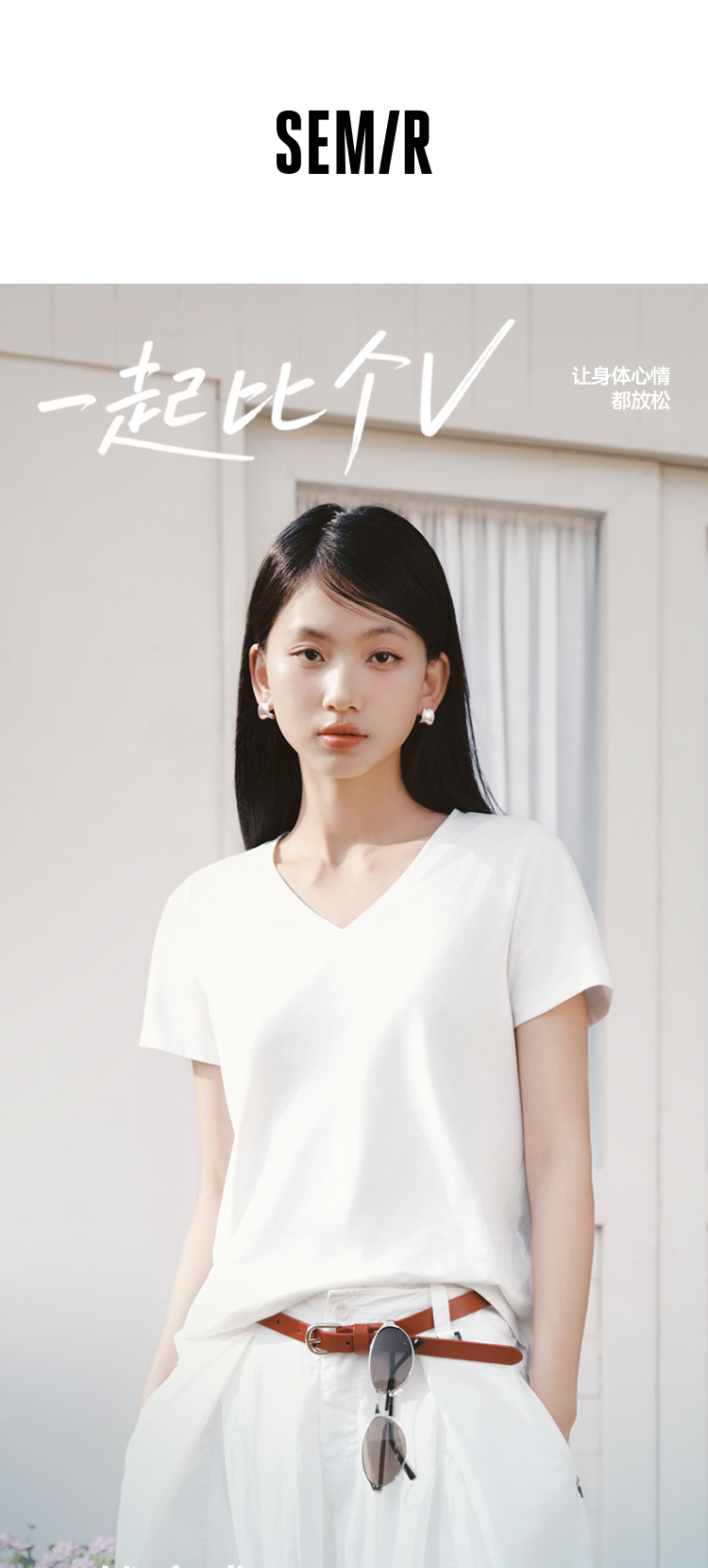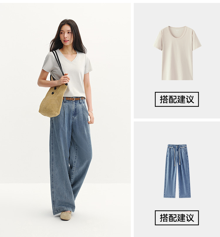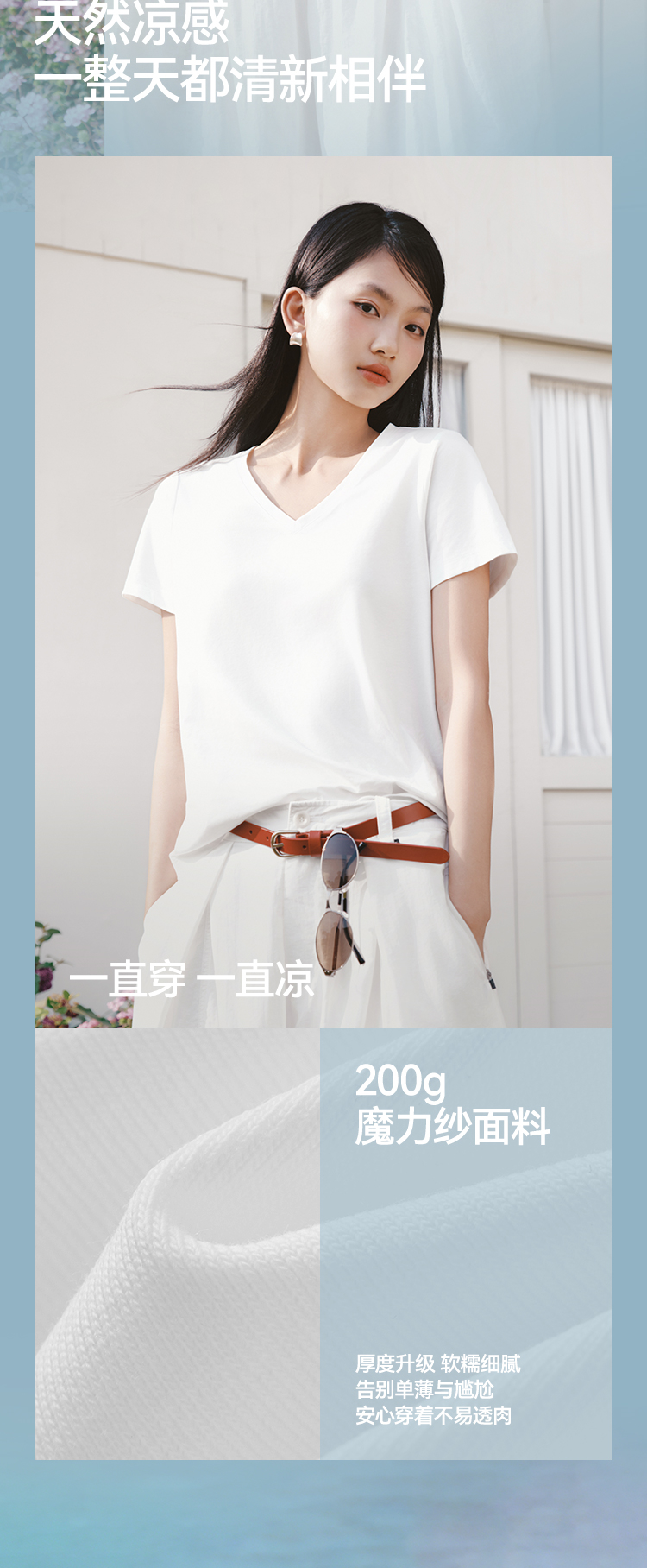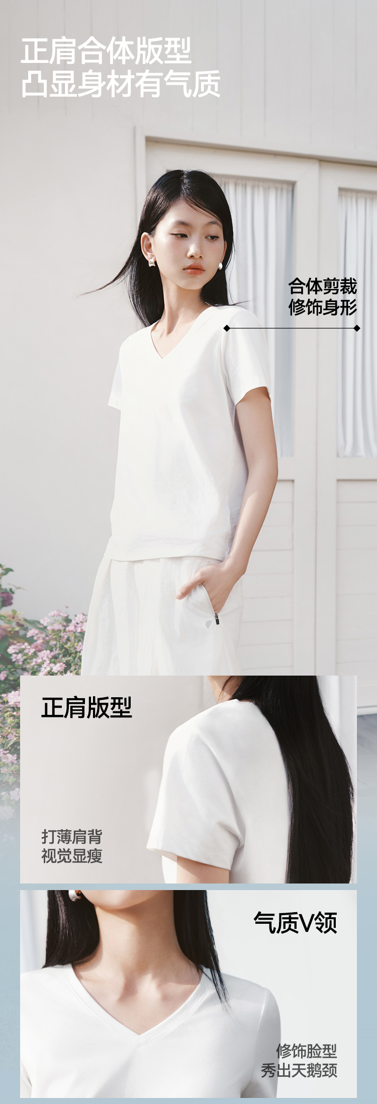 凉感T|森马短袖T恤女夏纯色V领正肩衣服吸湿速干抑菌2026新款上衣
