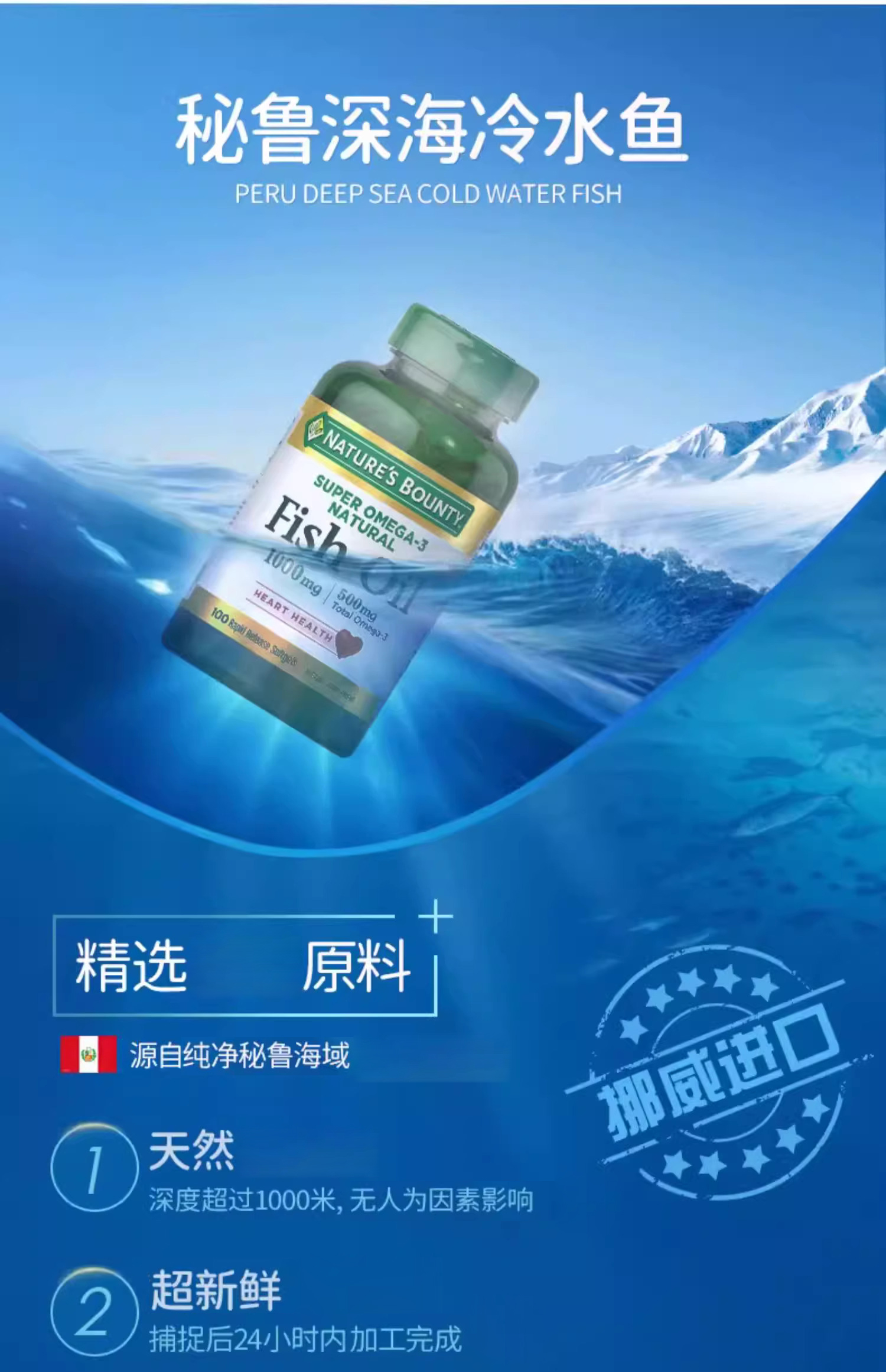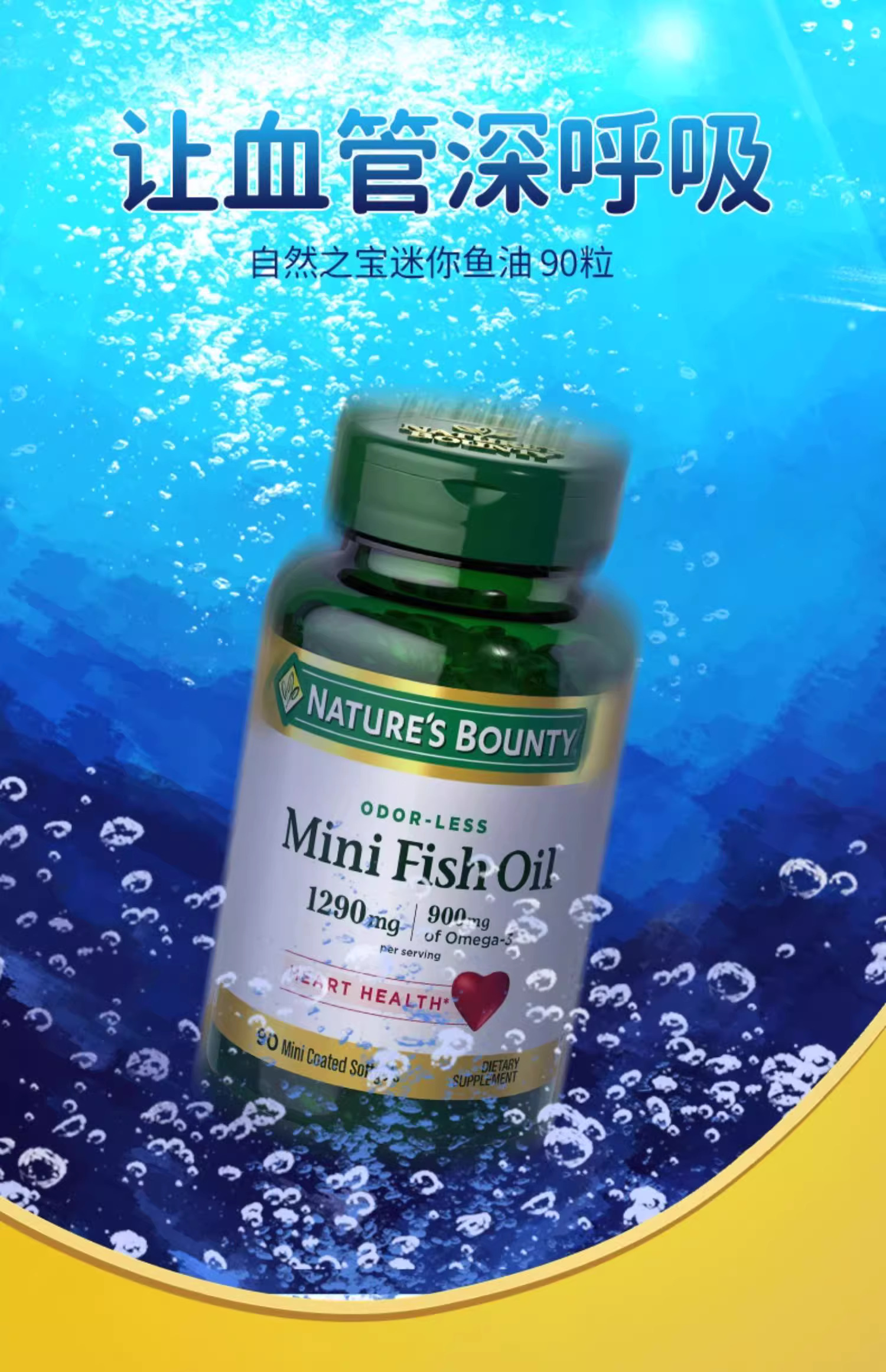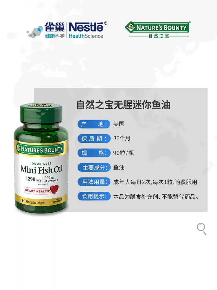 【含邮含税】Nature's Bounty自然之宝无腥味迷你鱼油软胶囊90粒/瓶