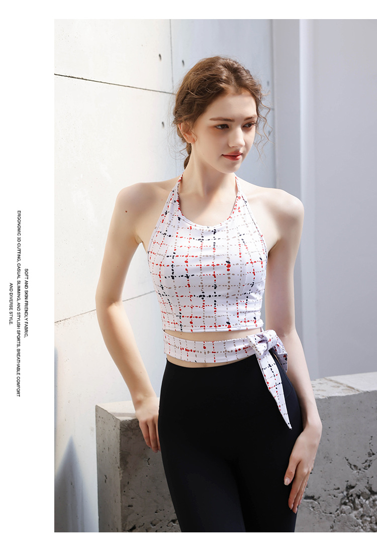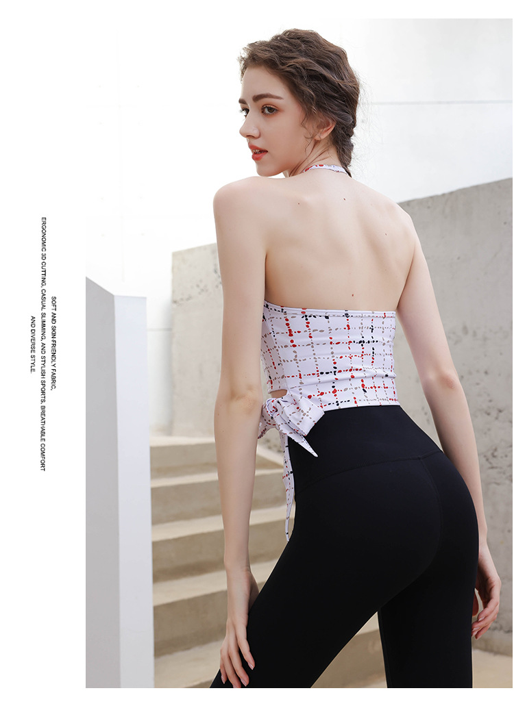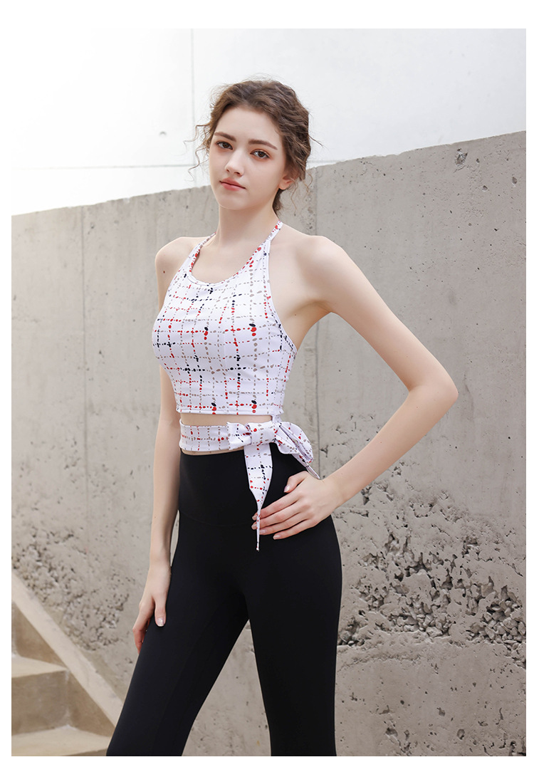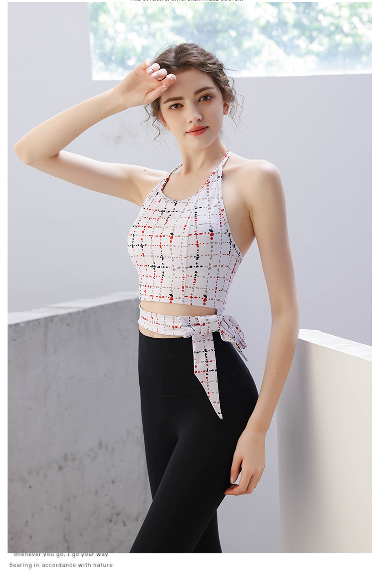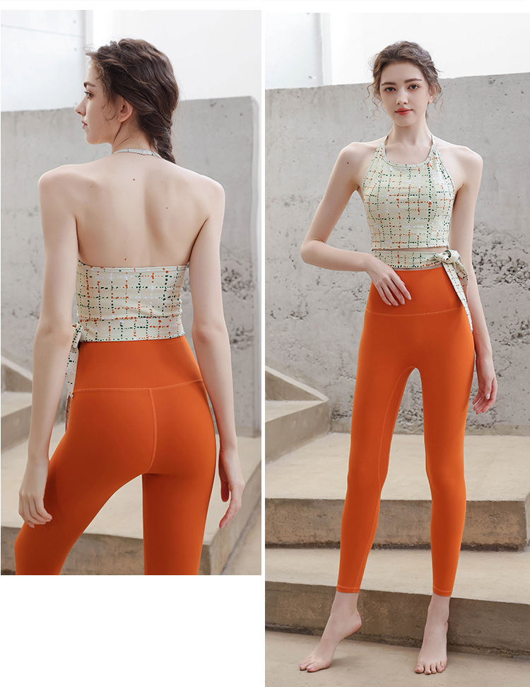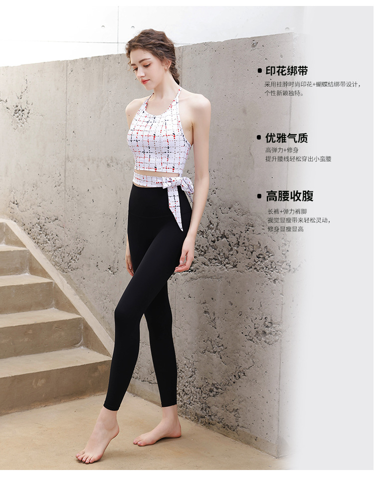 【皮尔新品】2024帛扬挂脖时尚印花瑜伽套装女夏季新款蝴蝶结绑带普拉提健身两件套