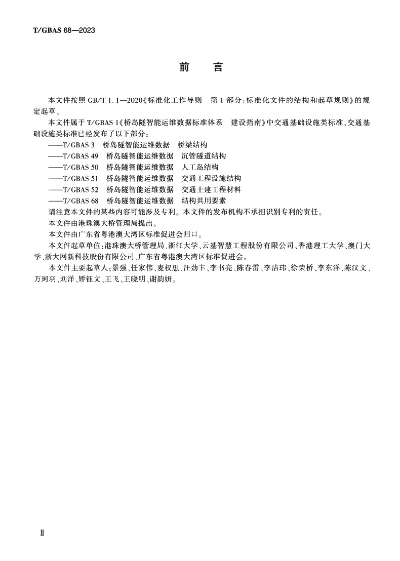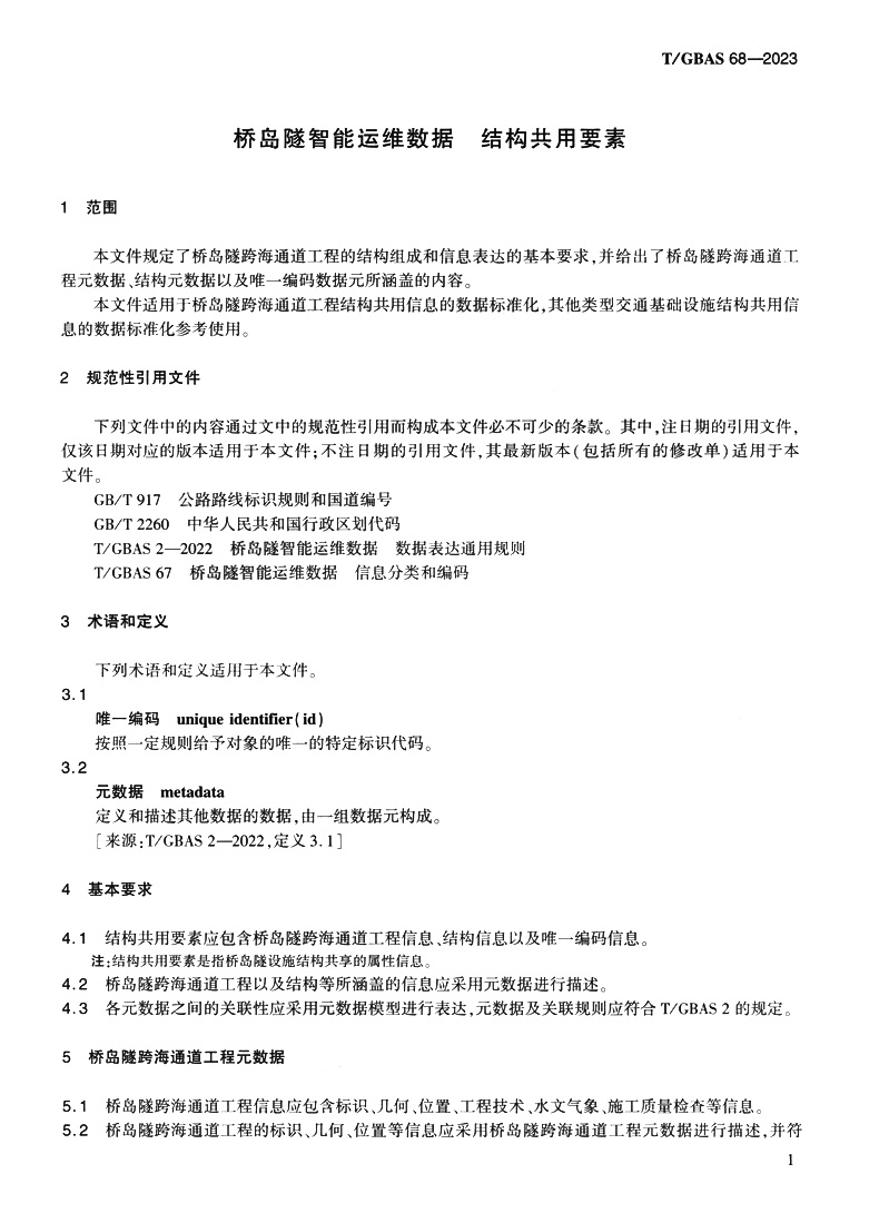 书名:桥岛隧智能运维数据 结构共用要素T/GBAS 68—2023