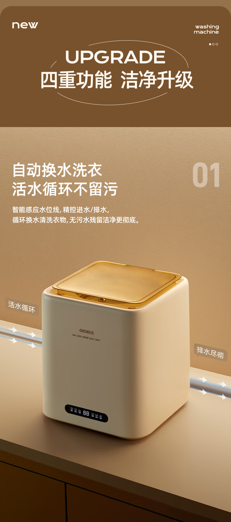 德国OIDIRE 洗衣机内衣内裤洗衣机小型洗衣机全自动洗脱一体洗衣机迷你婴儿洗衣机银离子仿手洗 ODI-XYJ12【水龙头款】