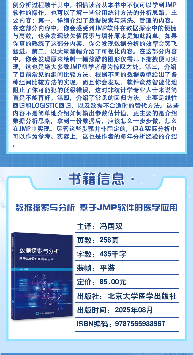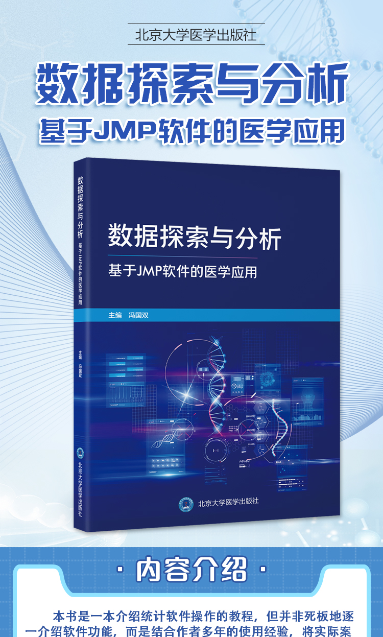 数据探索与分析 基于JMP软件的医学应用 冯国双 结合作者多年的使用经验融合实际案例分析 介绍JMP软件的操作教程北京大学医学出版社