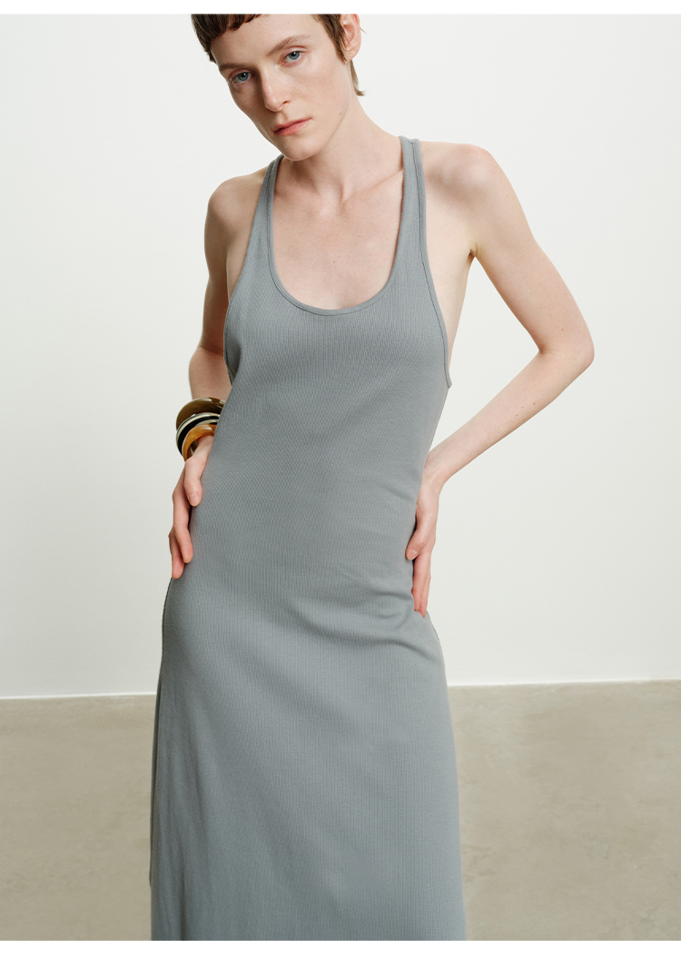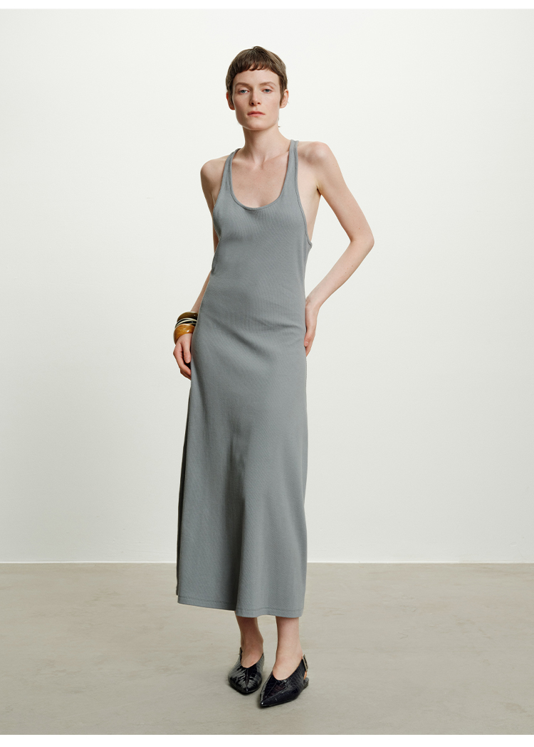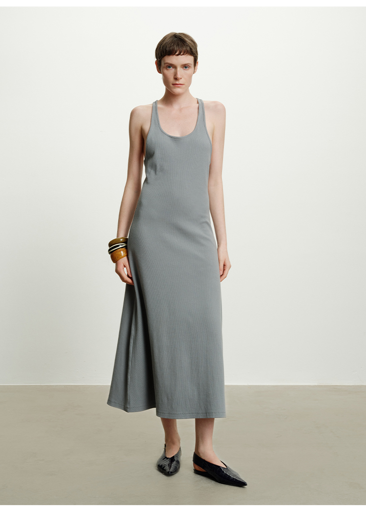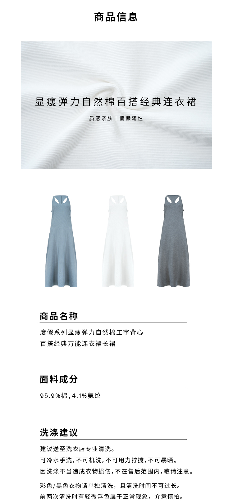 HIDEMI度假系列显瘦弹力自然棉工字背心百搭经典万能连衣裙长裙