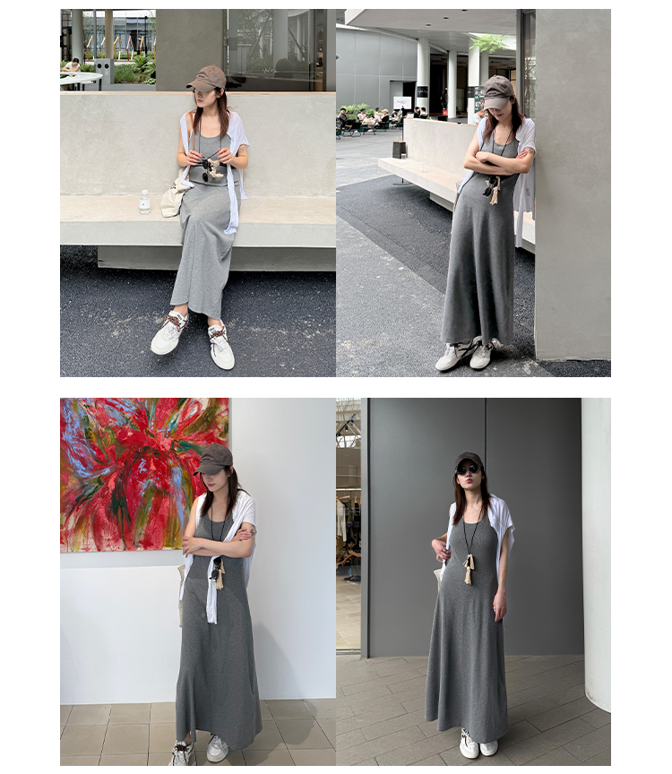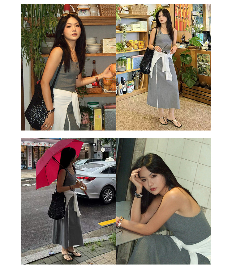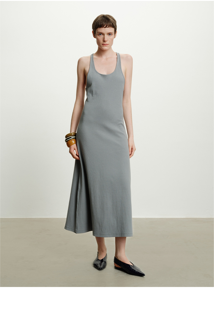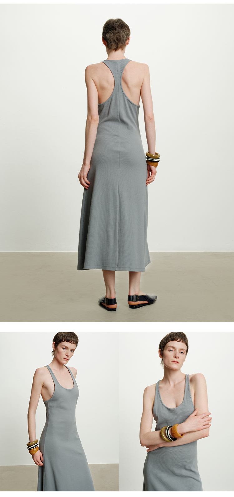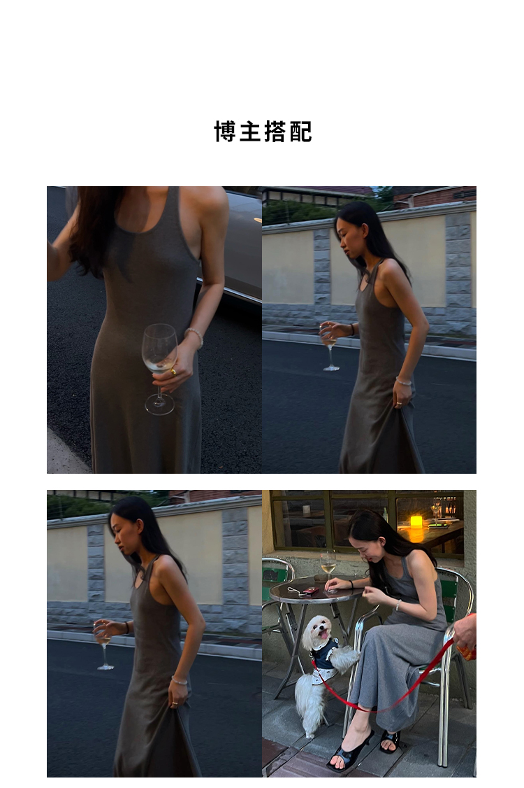 HIDEMI度假系列显瘦弹力自然棉工字背心百搭经典万能连衣裙长裙