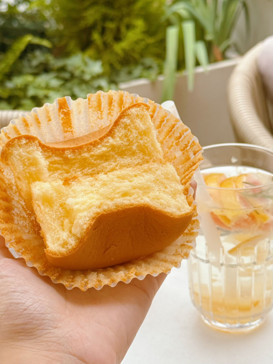 一捏,蓬松的蛋糕体软乎乎的 还没进嘴巴,奶香气就飘出来了 金黄的外圈,特别勾食欲