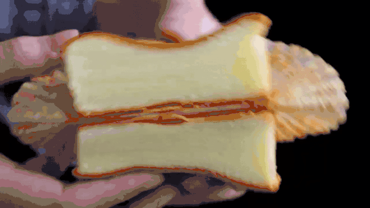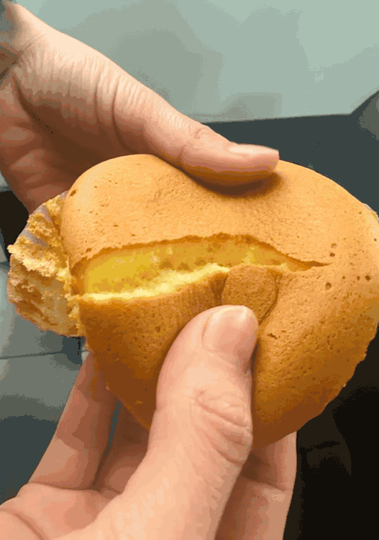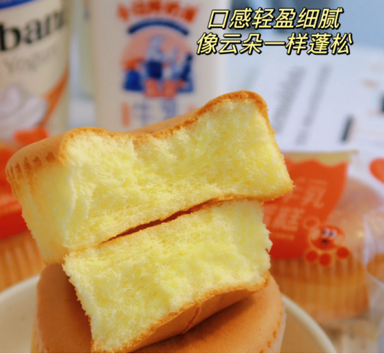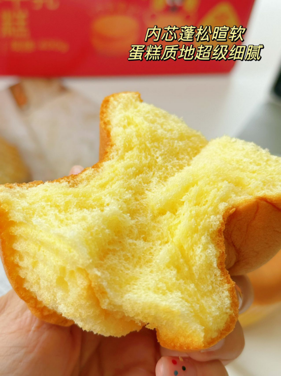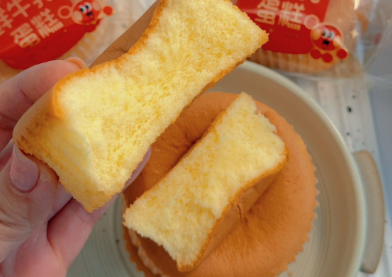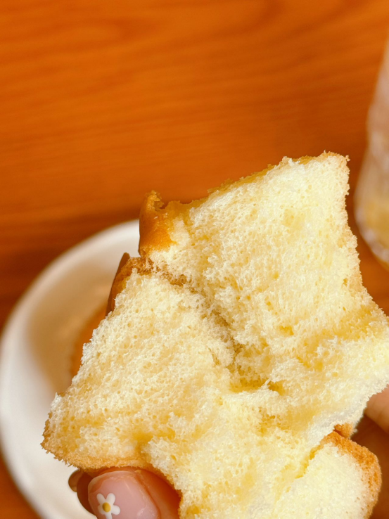 就像校门口的儿时回忆 味道用料都是对的!口感是升级的 整个蛋糕绵软Q弹🔅 手摁下去,它还会“duang”回来! 软绵绵胖乎乎,每个小面团都在呼吸