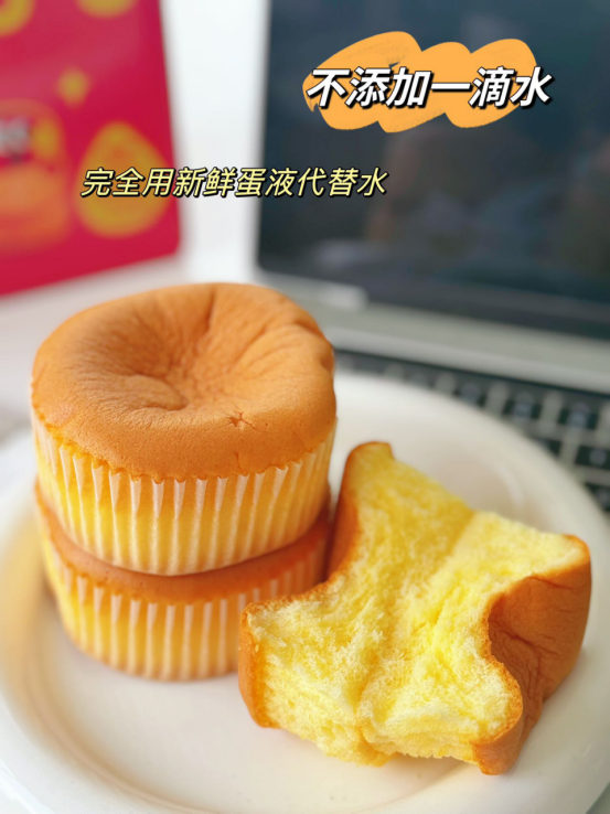 ✅全蛋制作不加一滴水,一朵可以吃的绵云 鲜鸡蛋含量≥51% 完全用新鲜蛋液代替水 蛋香十足、真材实料 营养丰富,每一口都是醇香