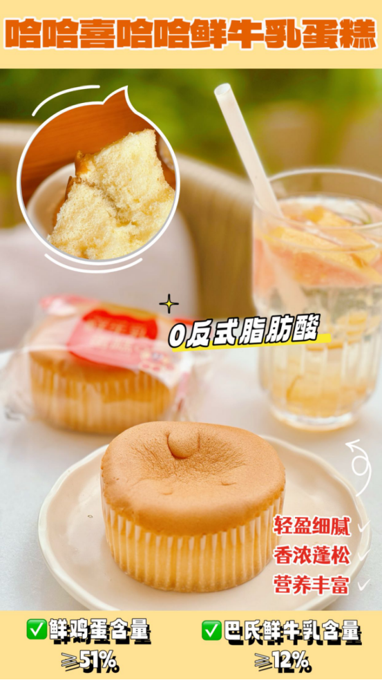 【哈哈喜哈哈鲜牛乳蛋糕】重新定义蛋糕新口感💥一块可以吃得到的绵云鸡蛋含量≥51%巨巨巨软嫩好吃 ,被疯抢的鲜乳蛋糕 承包你的健康早餐!!! ✅ 两种规格:400g/箱、300g/2箱 ✅0反式脂肪酸!放心吃!!不添加一滴水,鲜鸡蛋含量≥51% ✅采用巴氏牛乳,营养丰富,牛乳含量≥12% ✅口感轻盈细腻,香浓蓬松