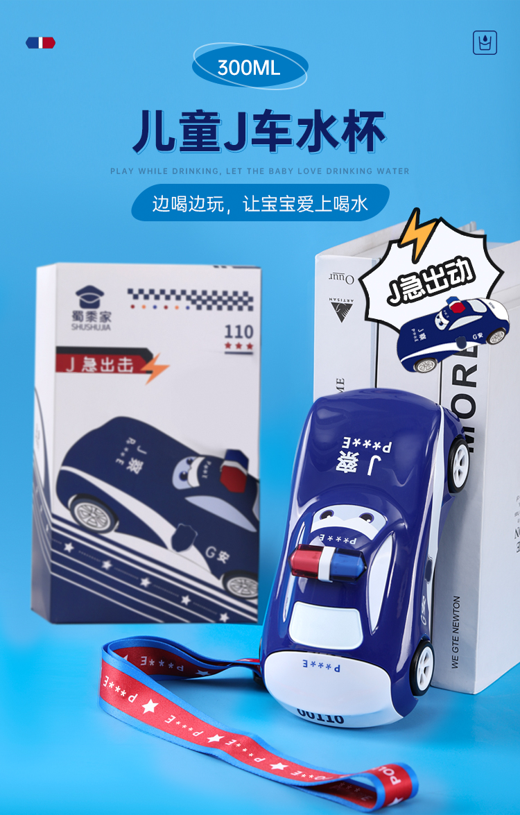 【实付满199送钥匙扣】【儿童J车水杯】儿童玩具车水杯一键开盖儿童吸管水杯创意喝水杯子