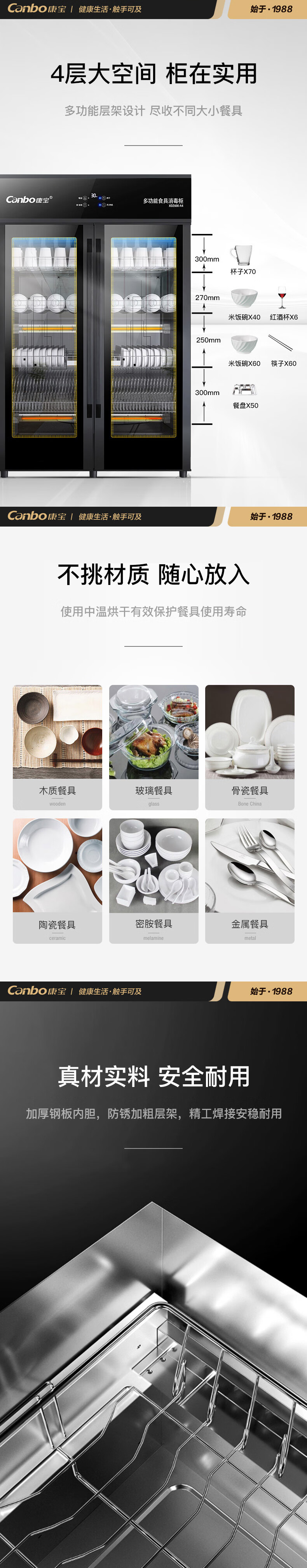 康宝(Canbo)消毒柜 商用多功能干燥保洁柜立式双门饭店酒店食堂餐厅大容量餐具消毒碗柜 XDZ600-A4