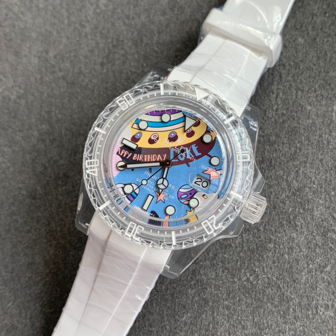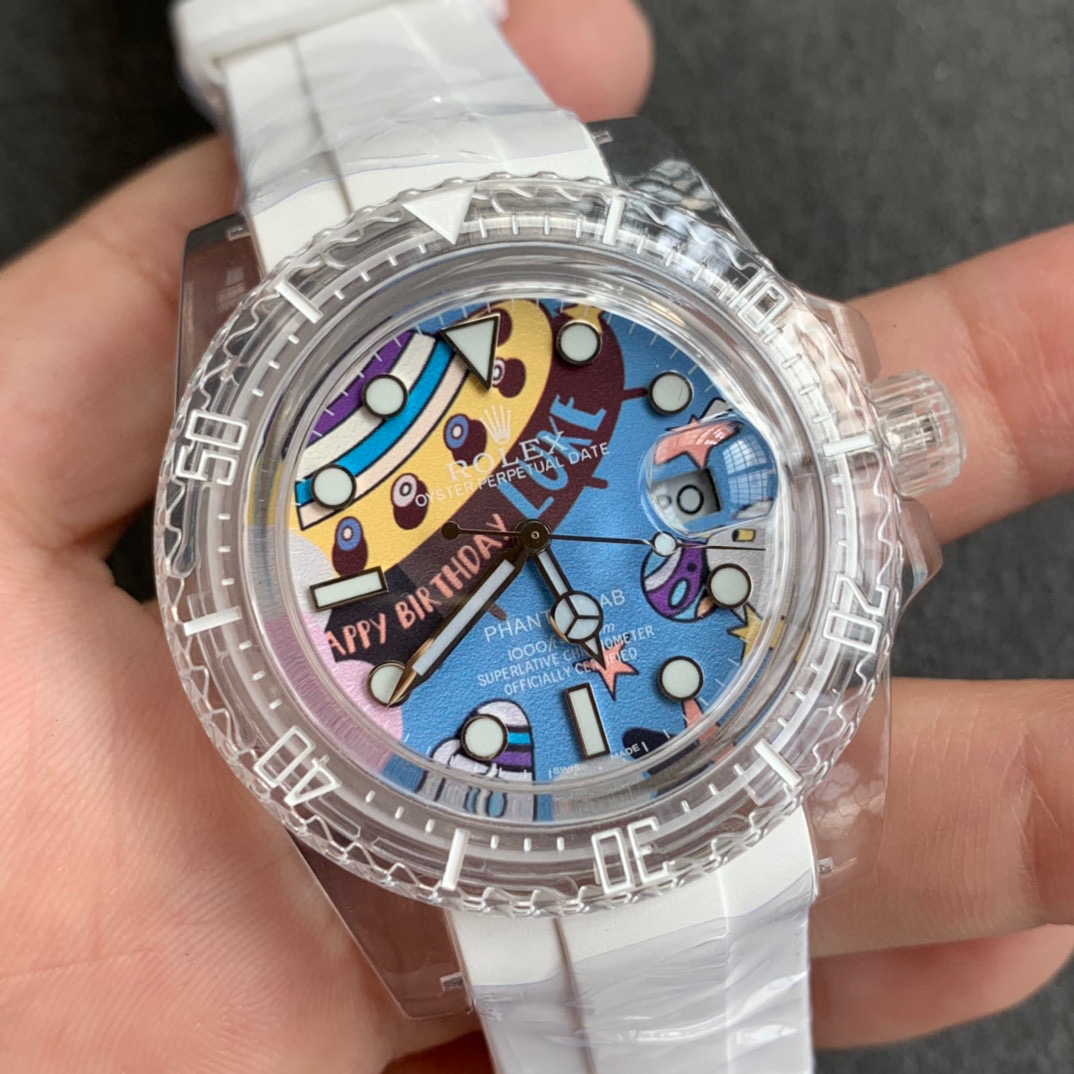 KZ幻影实验室改装劳力士透明水鬼 水晶壳 整装启航 唯芯不变,天马行空之作,迷彩与纯色,心旷神怡,释放与众不同的魅力!进口泰国橡胶,白色胶带,永不变黄,表扣精细打磨,无敌质感,亚克力透明表壳遵从原装结构,重新设计前后锅盖型镜面,彰显透视感精髓,r型弹簧与曲线内牙相互咬合,和圈口外牙相交呼应,追求细节之美,超级3135蓝游丝全自动机械机芯透过底盖一览无余,用匠芯打造奢华的极致!
