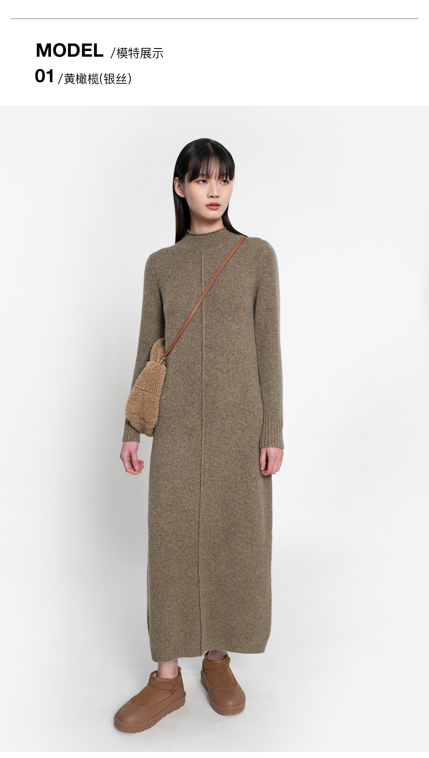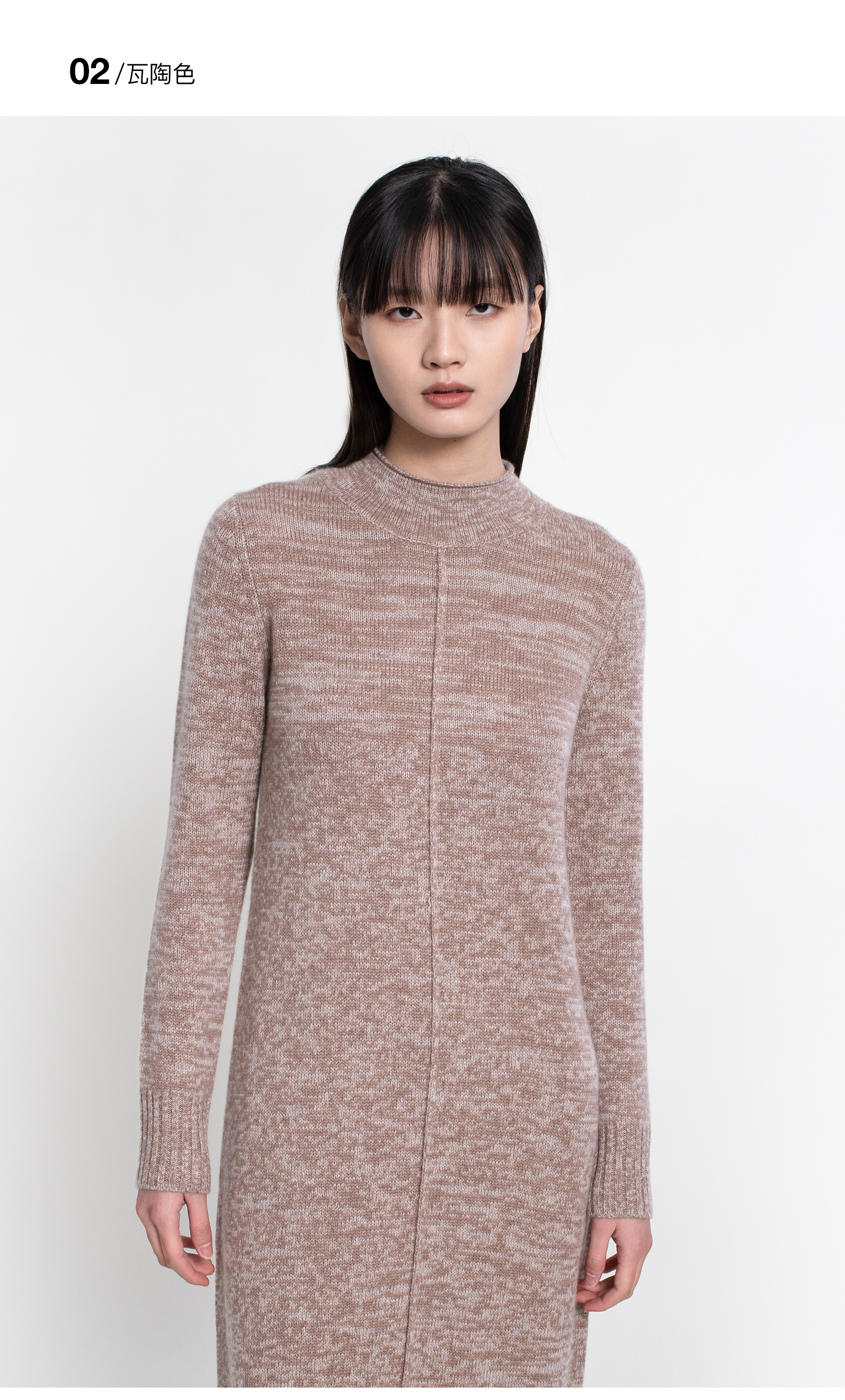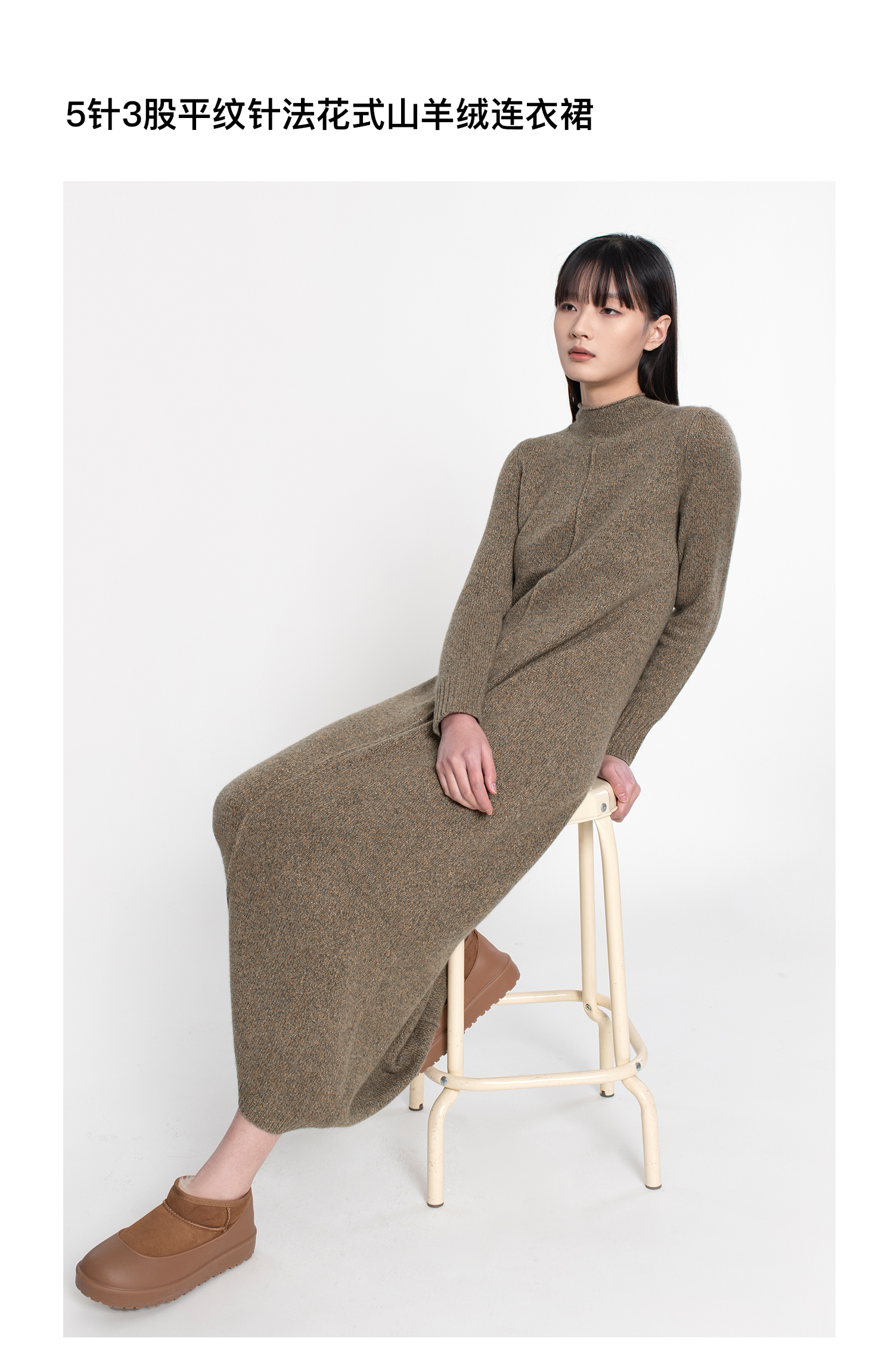 322工房复古式花纱羊绒针织连衣裙女新款半高领毛衣裙长裙A771