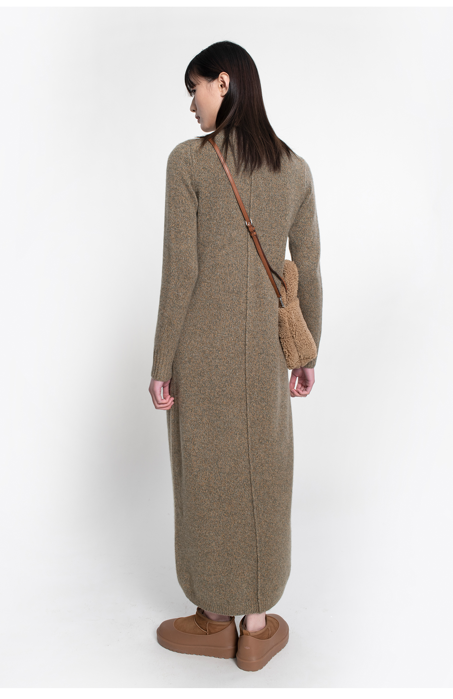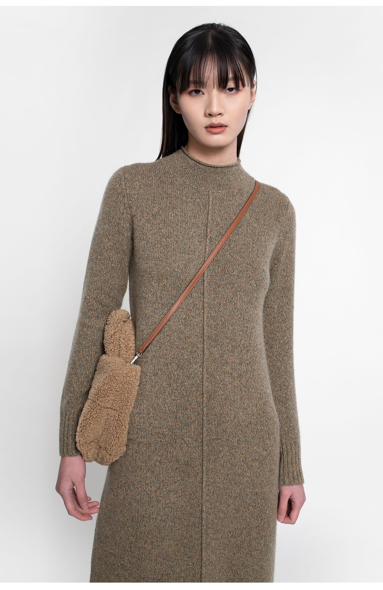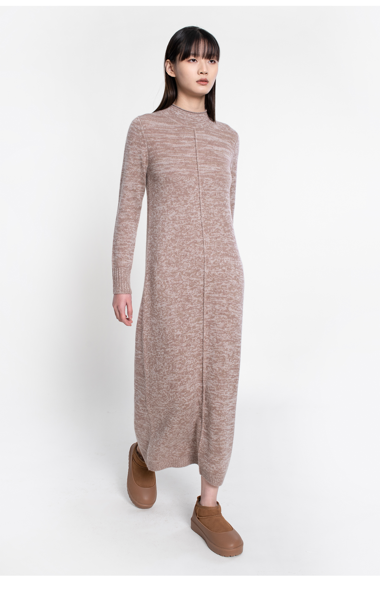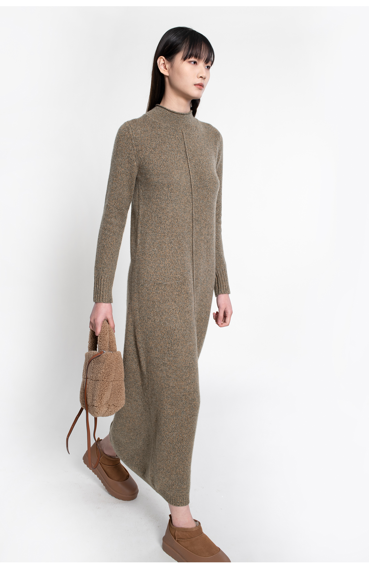 322工房复古式花纱羊绒针织连衣裙女新款半高领毛衣裙长裙A771
