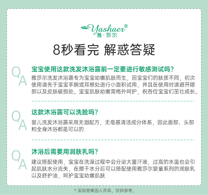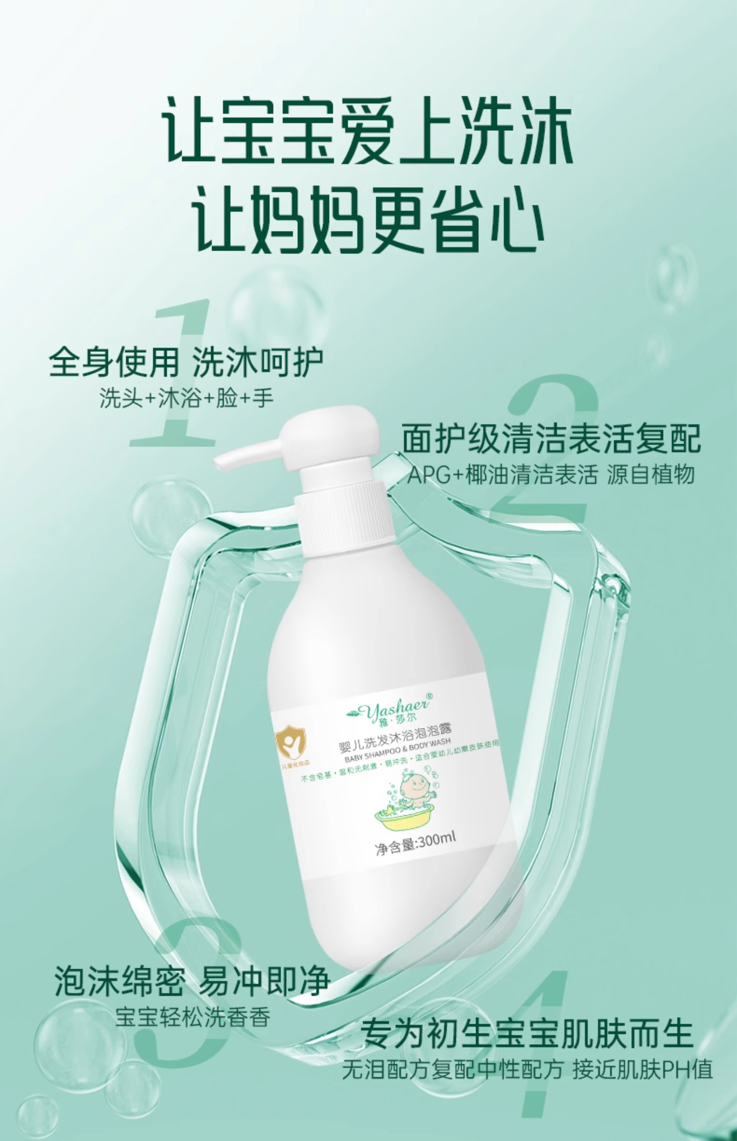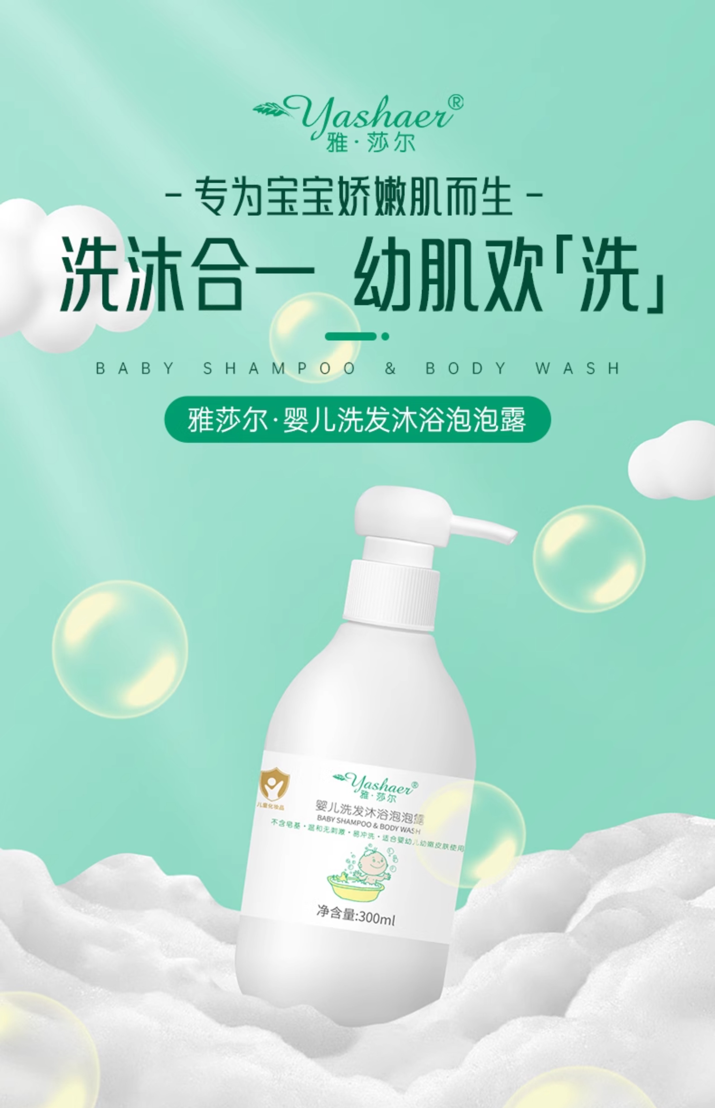 雅莎尔婴儿洗发沐浴泡泡露300ml