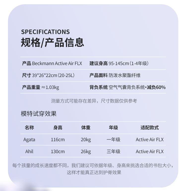 Active Air FLX魔法气垫系列 20L-25L挪威Beckmann专业护脊书包,随机 赠送笔袋一个 有效减重50%重量,多次占据评测榜榜首