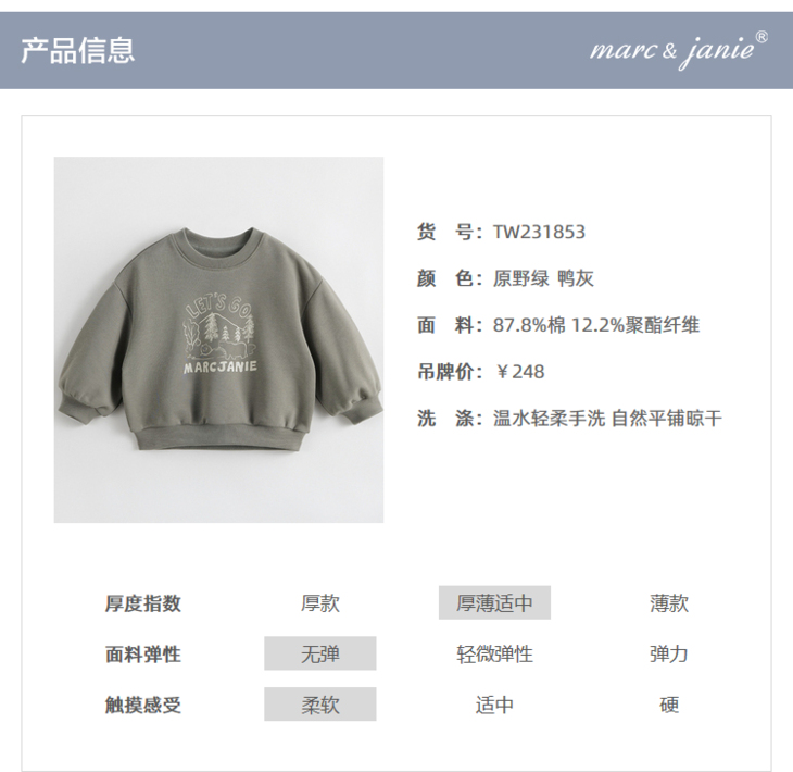 【户外风】马克珍妮秋装新款 男童宽松落肩运动卫衣231853