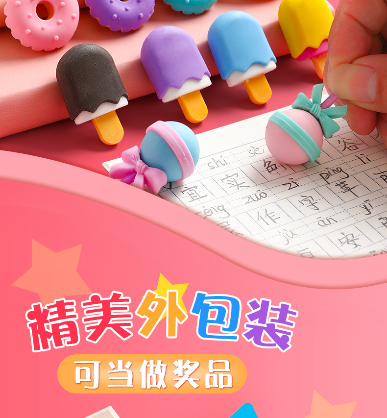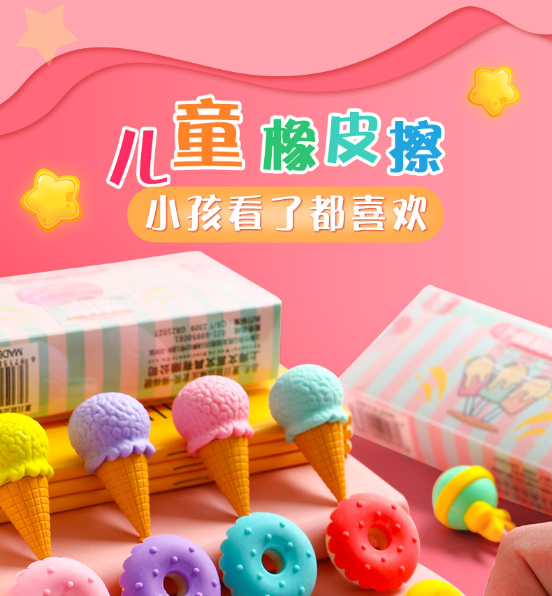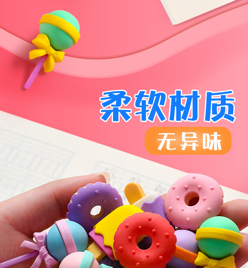 【可爱卡通橡皮擦】儿童创意造型小学生幼儿园专用甜甜圈冰淇淋棒棒糖甜筒款不留痕韩国可爱超萌卡通立体文具小礼品奖品