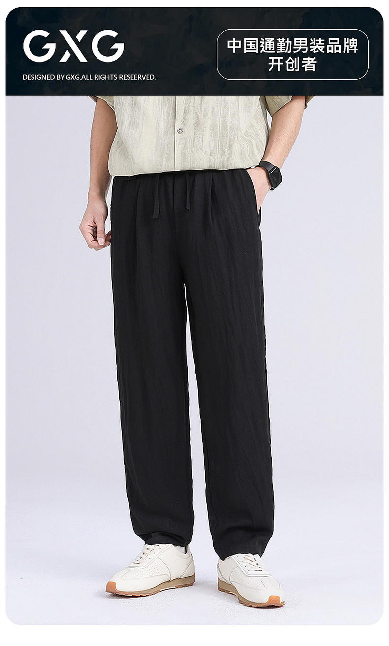 GXG男装【天丝莱赛尔】26夏季舒适弹力松紧腰绳男式直筒休闲裤K&C