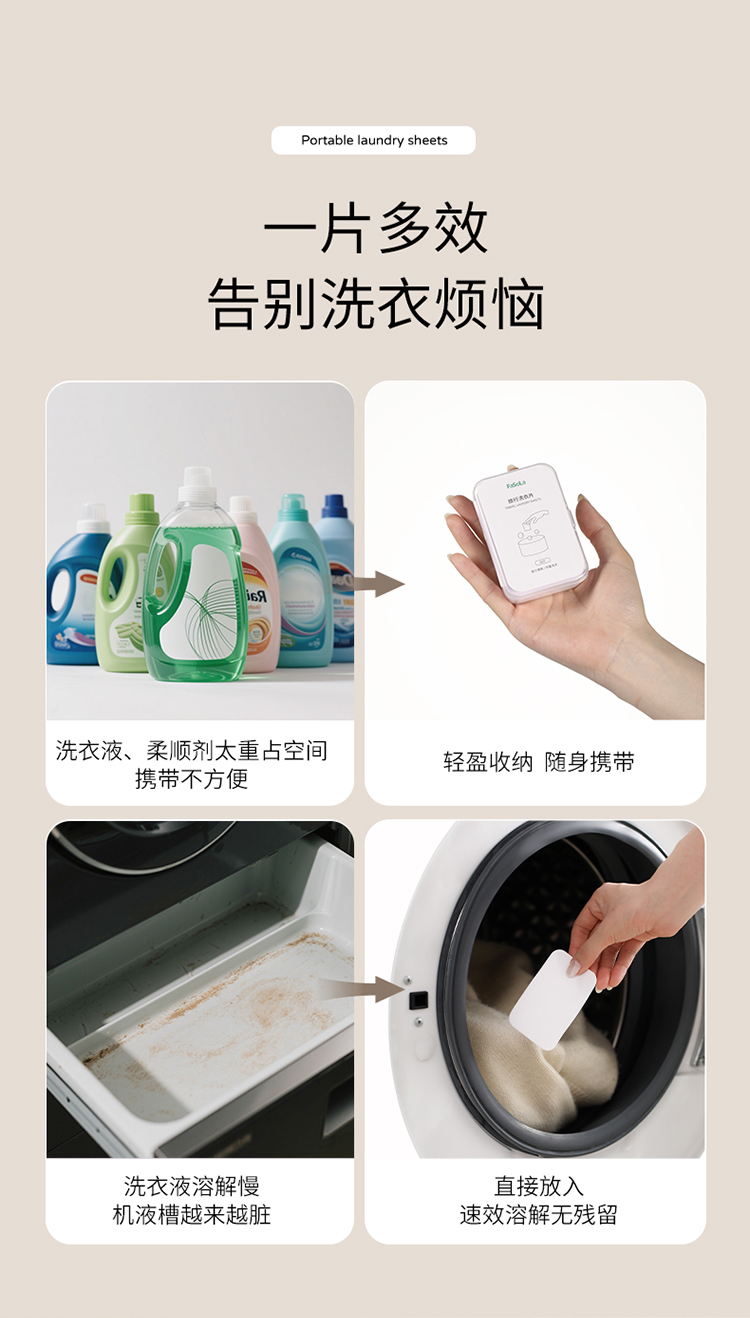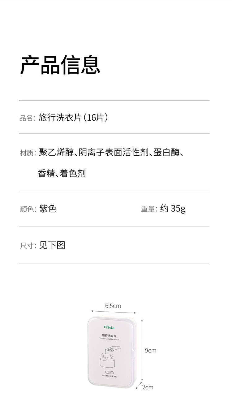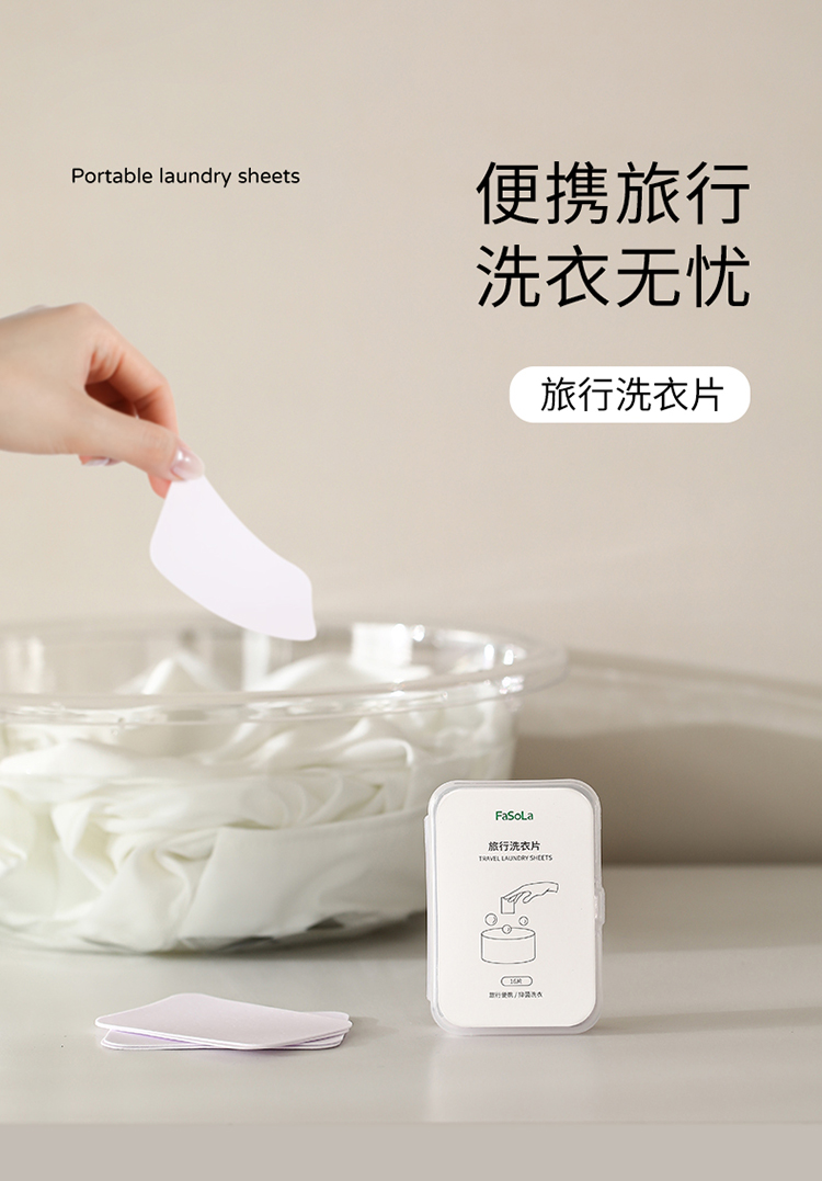 FaSoLa旅行洗衣片便携式小肥皂香皂片出差旅游清洁衣服内衣泡泡纸
