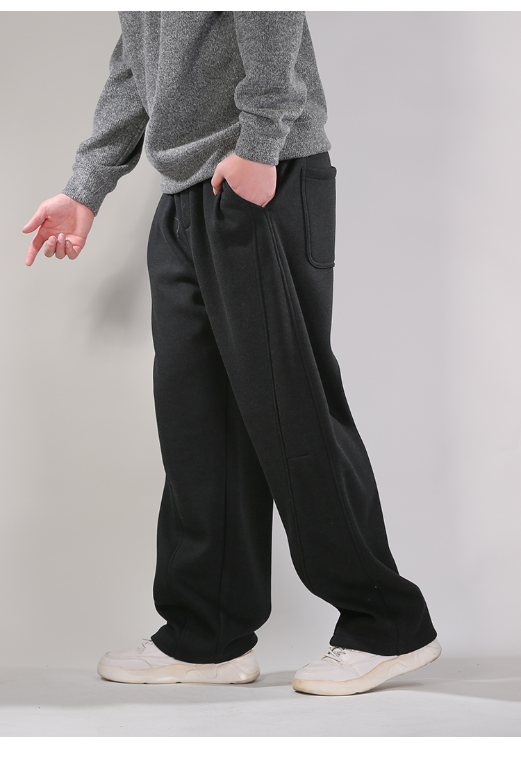 DRONKOO 2025 抽绳前斜破骨膝盖破缝右袋金属标复合绒厚休闲长裤