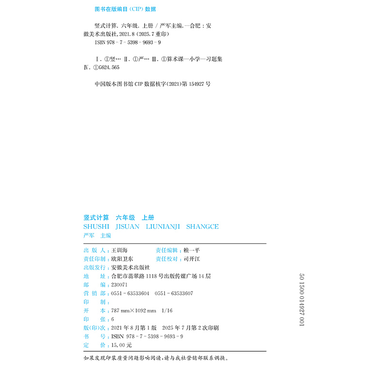 2025秋【人教版】小学数学1~6年级上 竖式计算