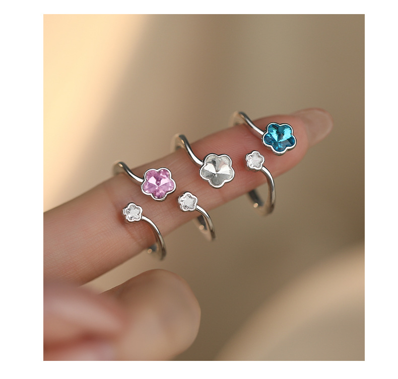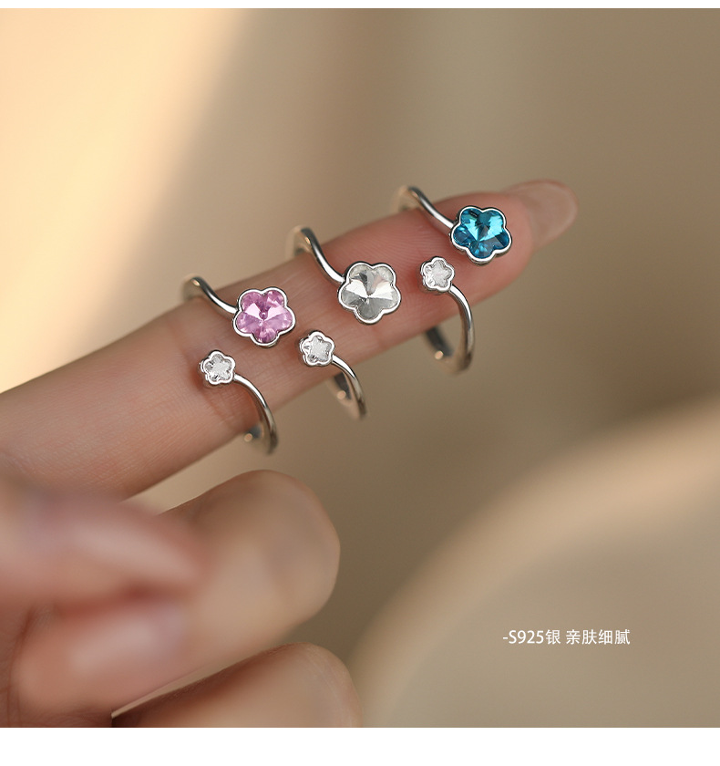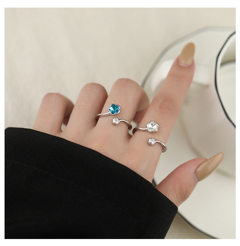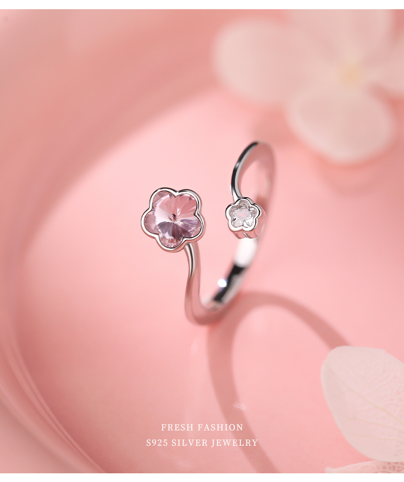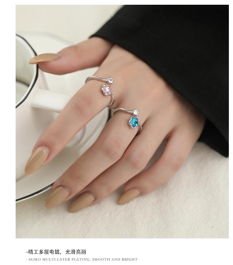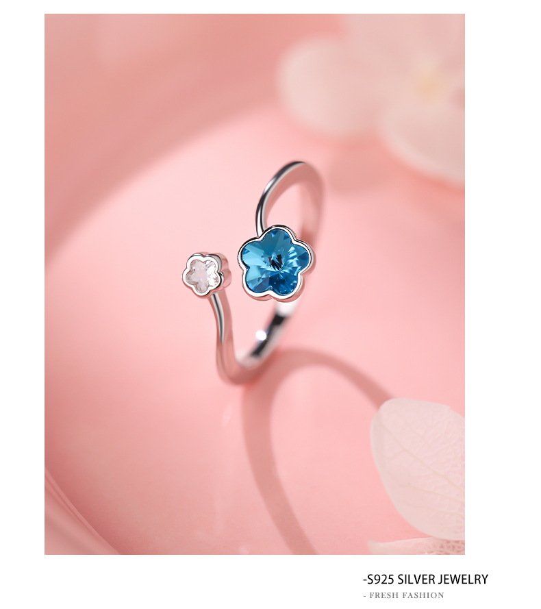 【璀璨之花】S925纯银彩色水钻花朵开口戒指【YXS-K2443】