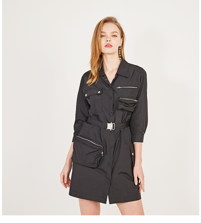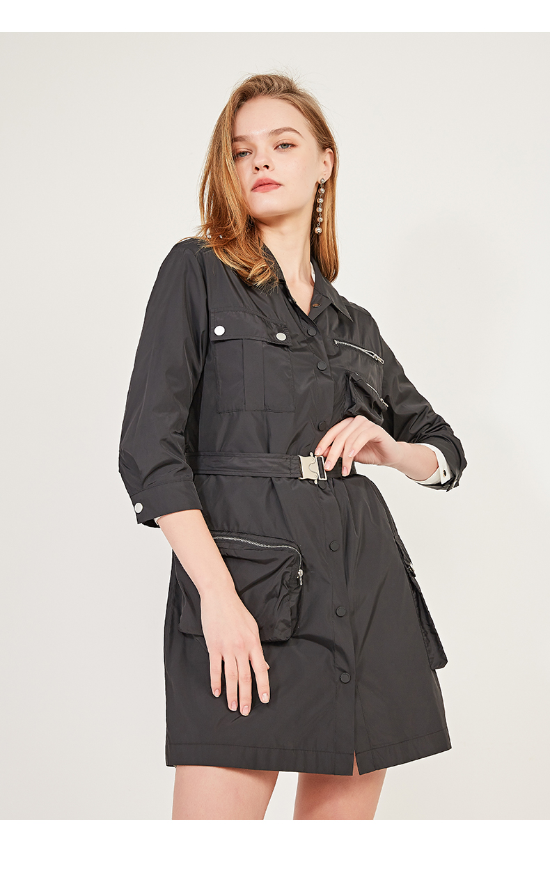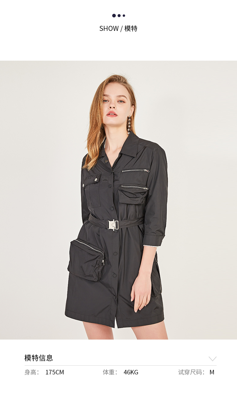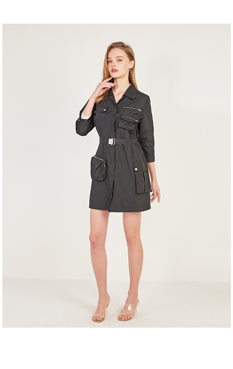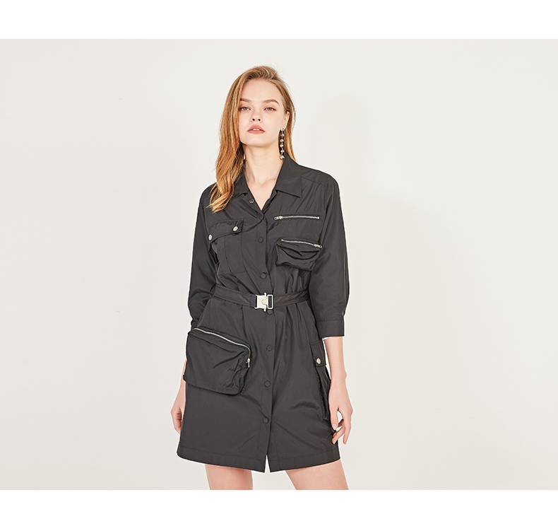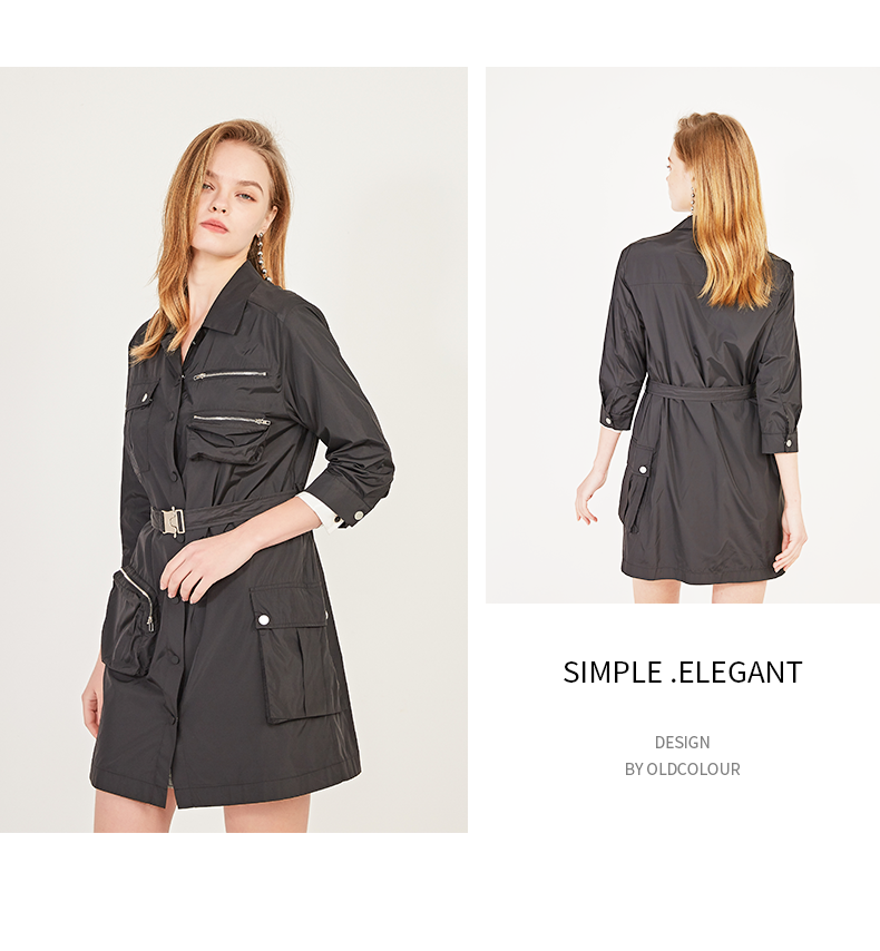oldcolour春季休闲七分袖设计感单排扣工装连衣裙N12103204