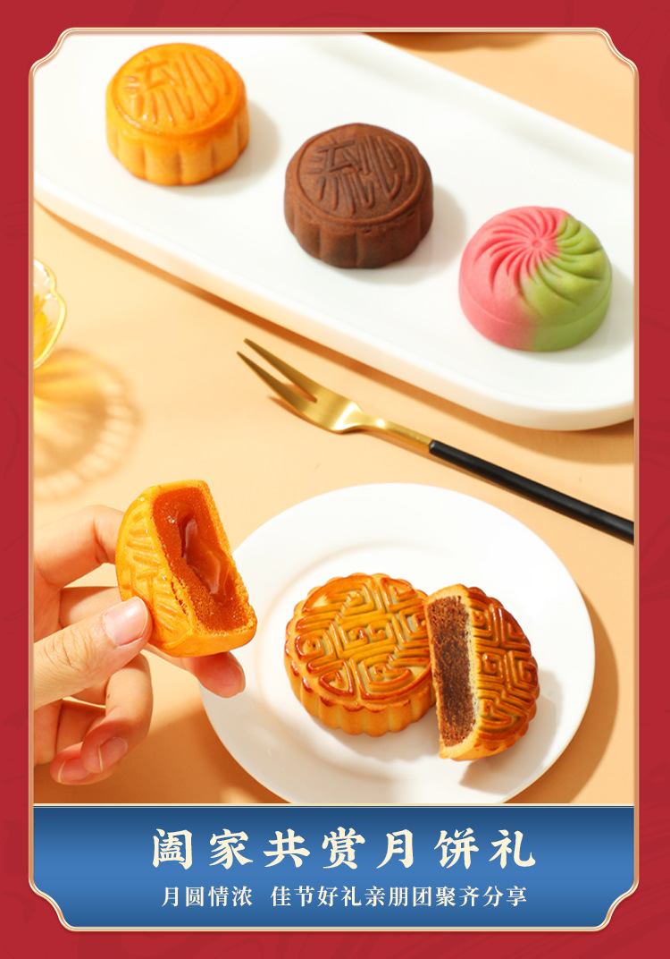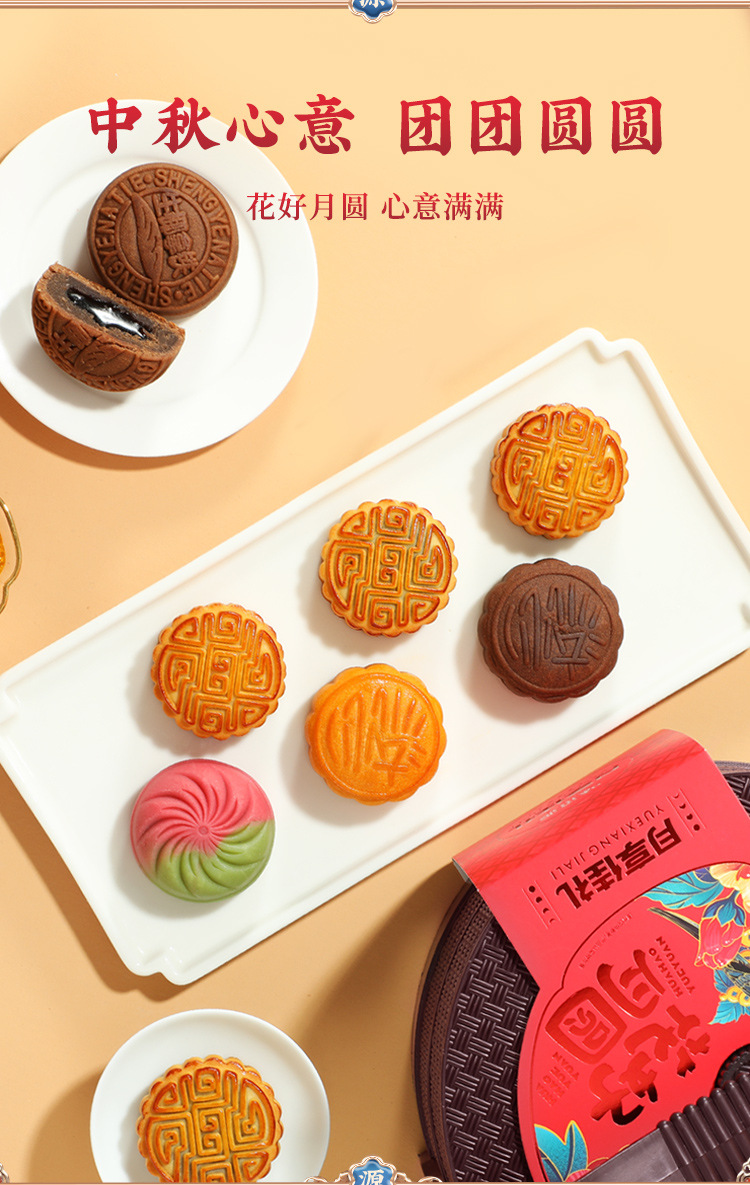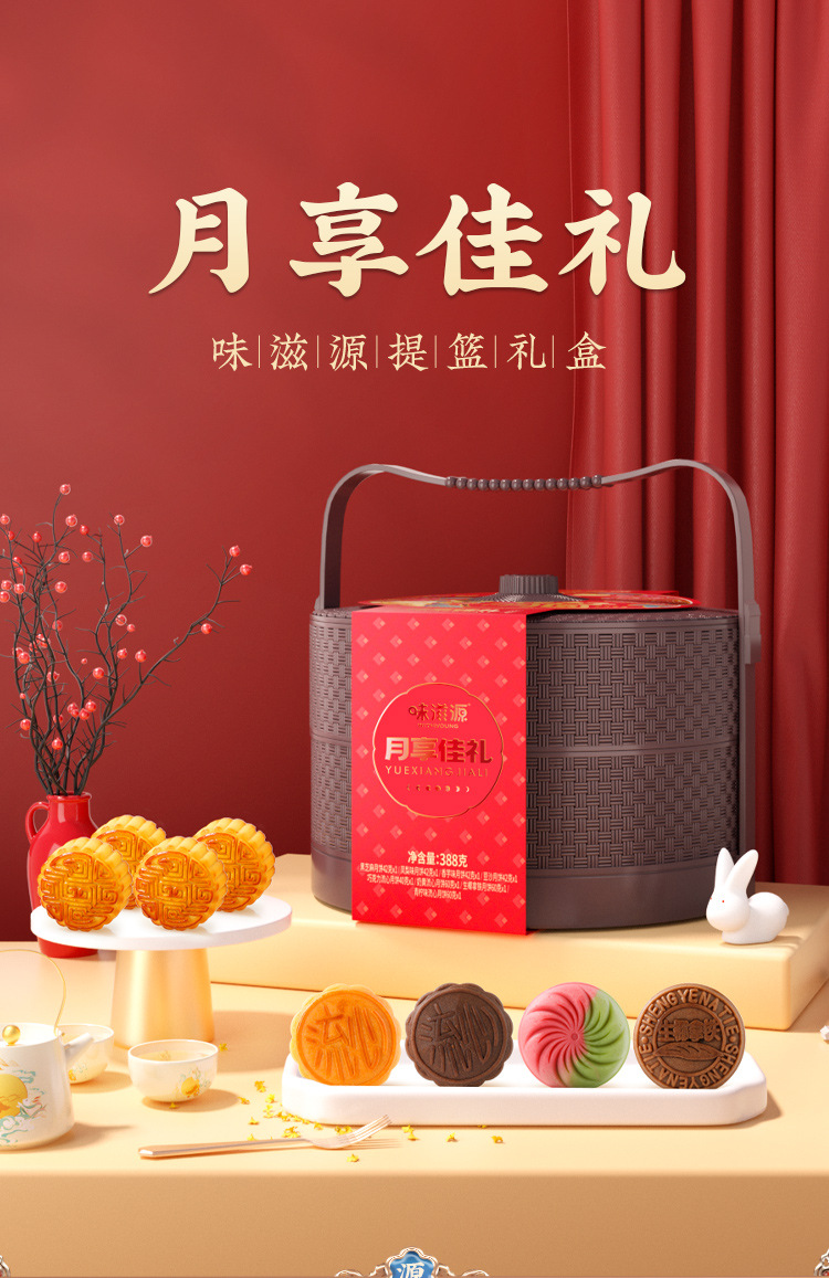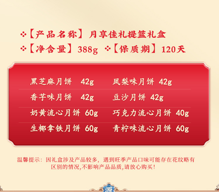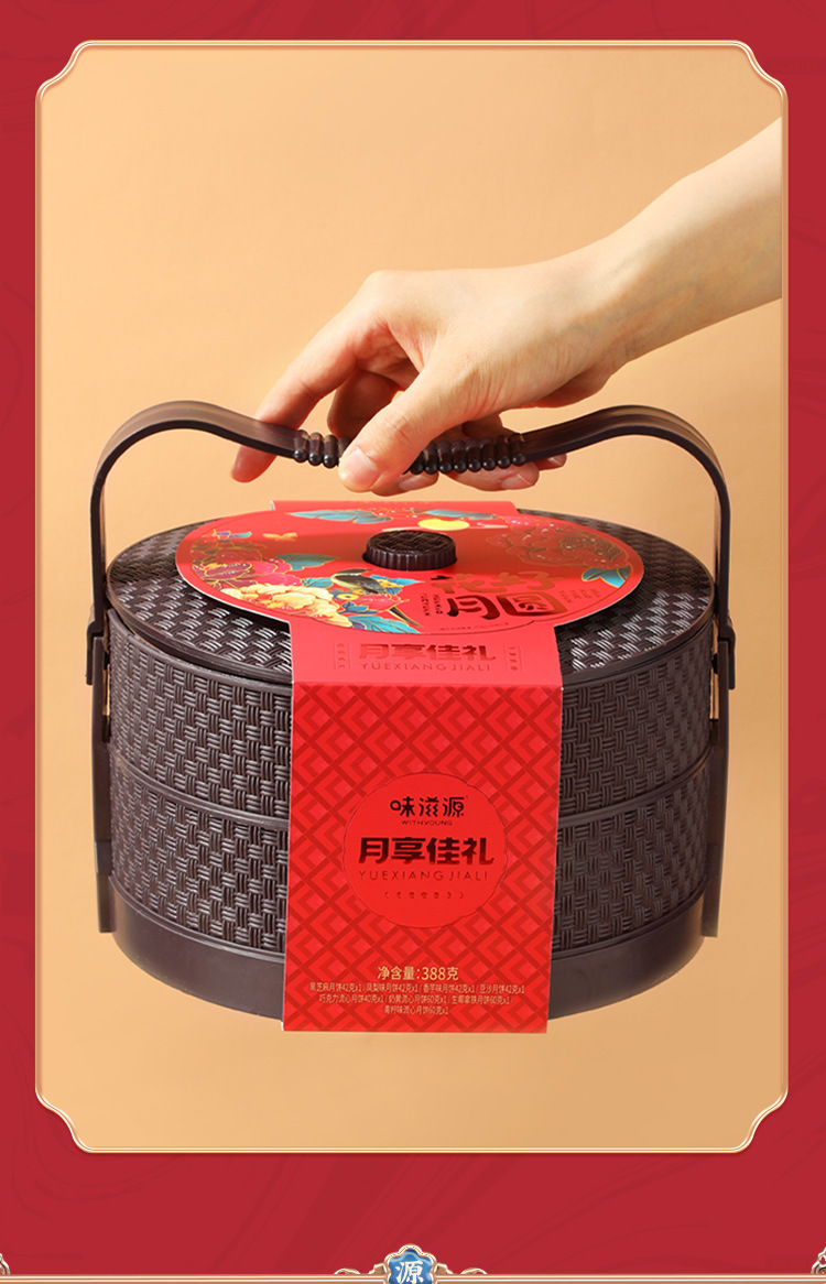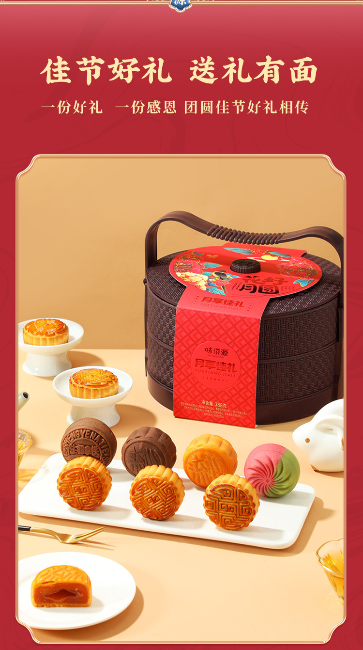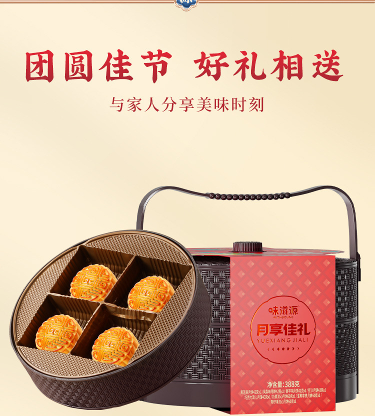 中秋月饼 提篮礼盒 388g 广式 黑芝 麻豆 沙味 多口味 奶黄流心 月饼 包邮