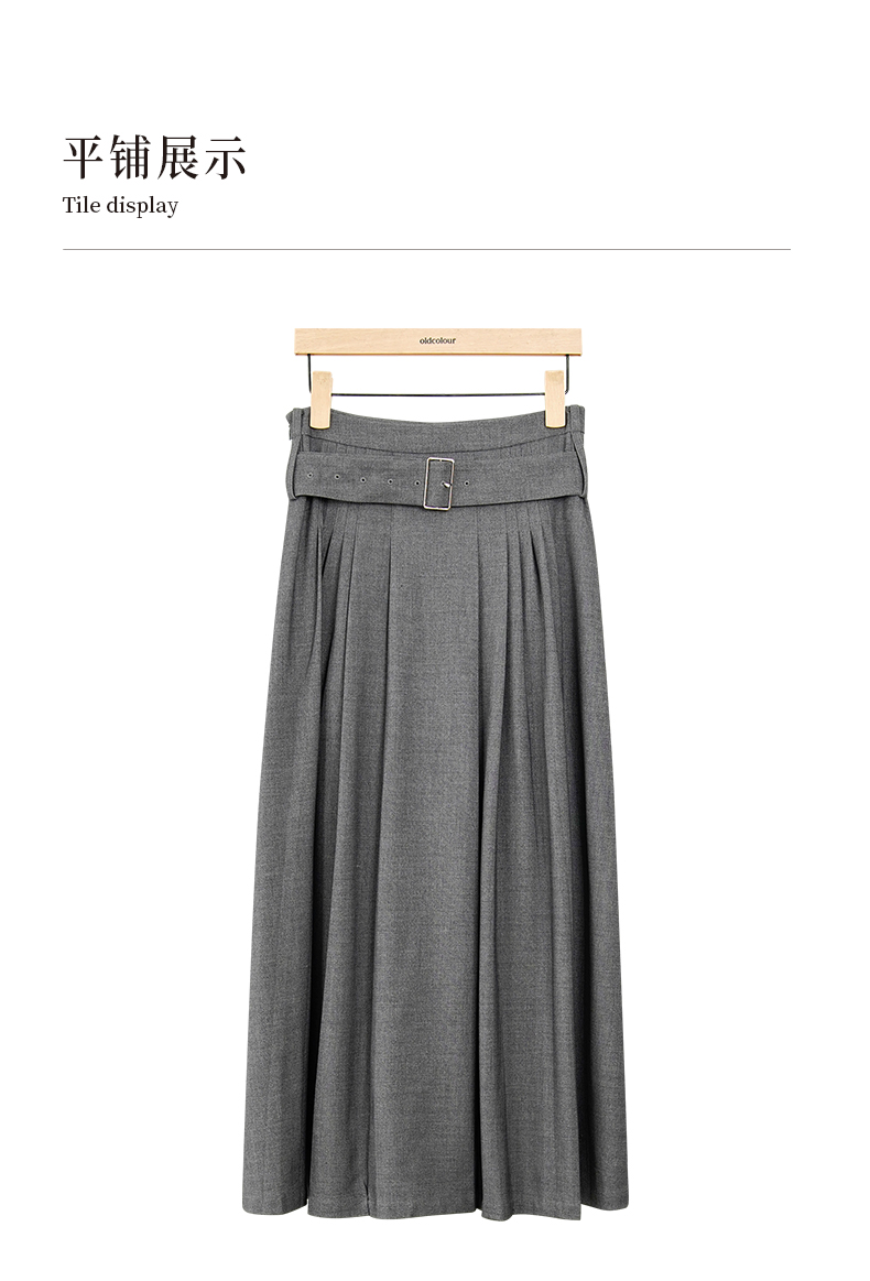 oldcolour冬季新品纯色高腰百搭显瘦配腰带气质半身裙女P420601A1