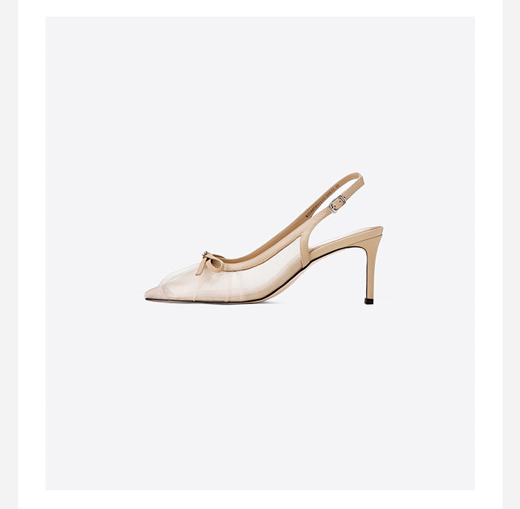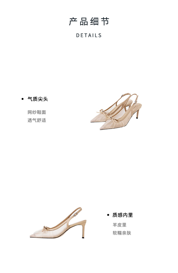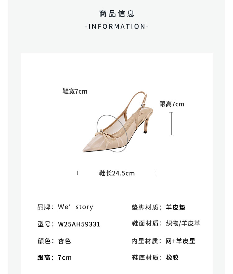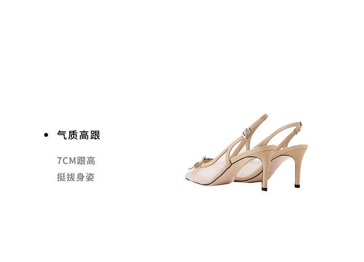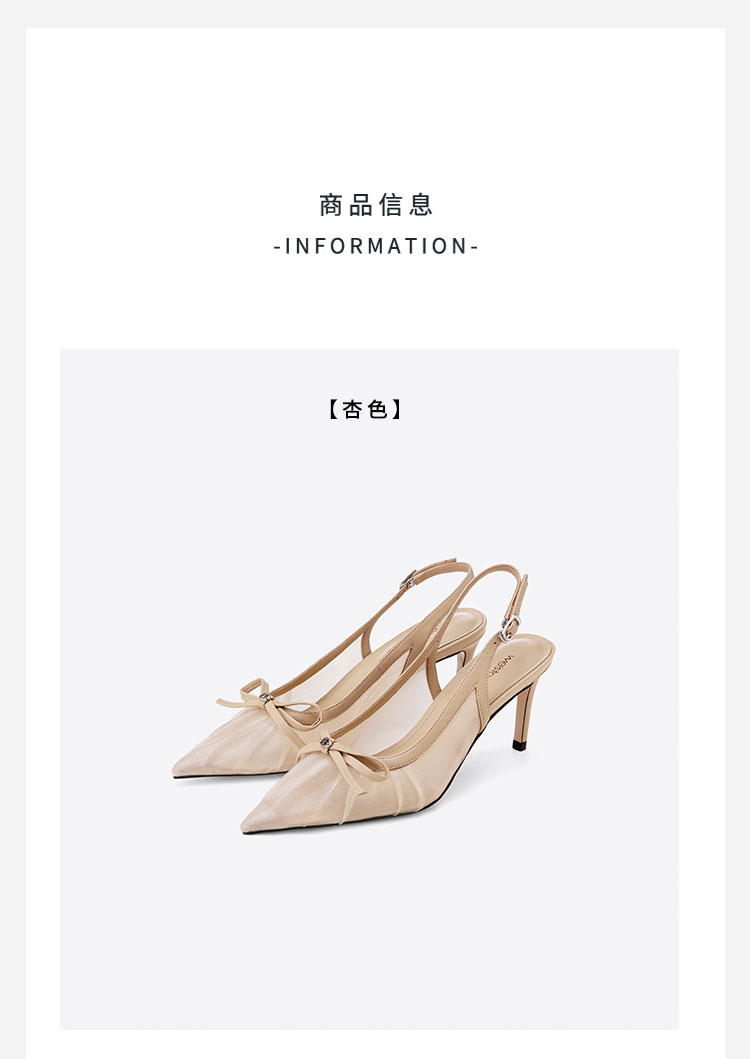 Westory2025年夏季网纱镂空尖头中跟后空鞋通勤空凉鞋W25AH59331