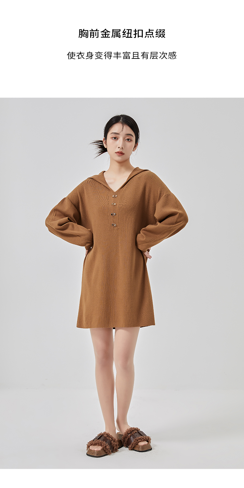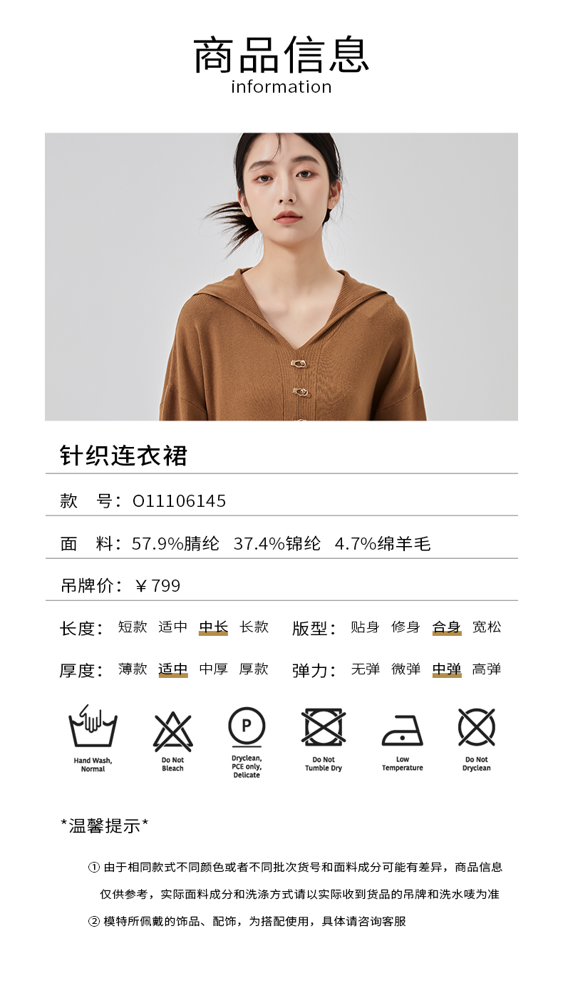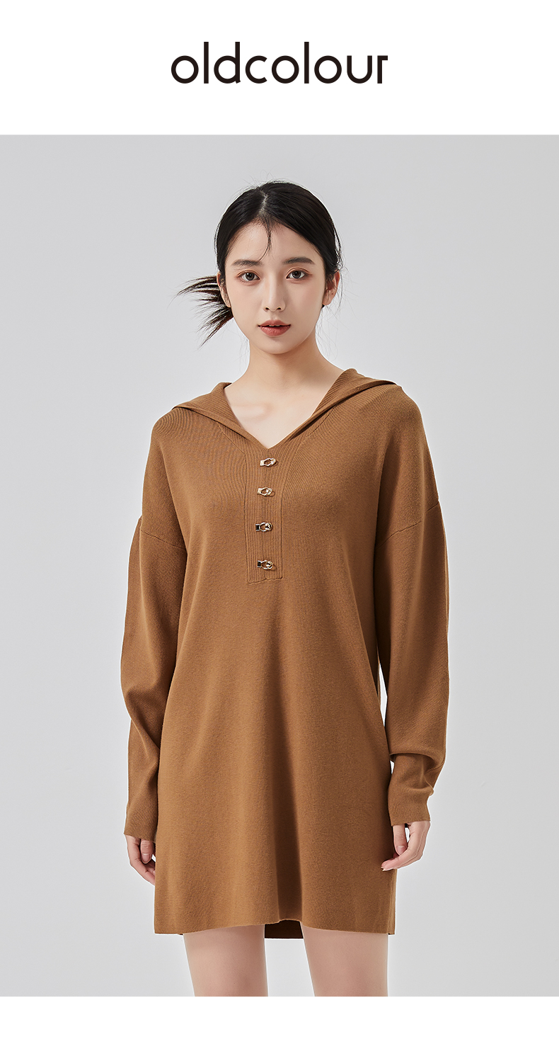 oldcolour春季新款宽松百搭简约短款针织连衣裙女O11106145