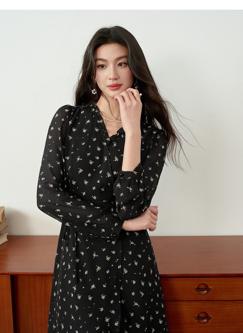 【严选】诗凡黎氛围感小雏菊碎花连衣裙2026春新款法式浪漫飘逸优雅淑女裙7H2290251