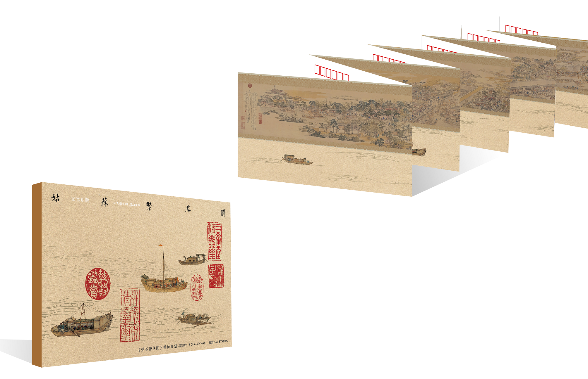 产品内容配置:12枚连体明信片,含《姑苏繁华图》特种邮票套票(票卡形式,不贴票不销戳)