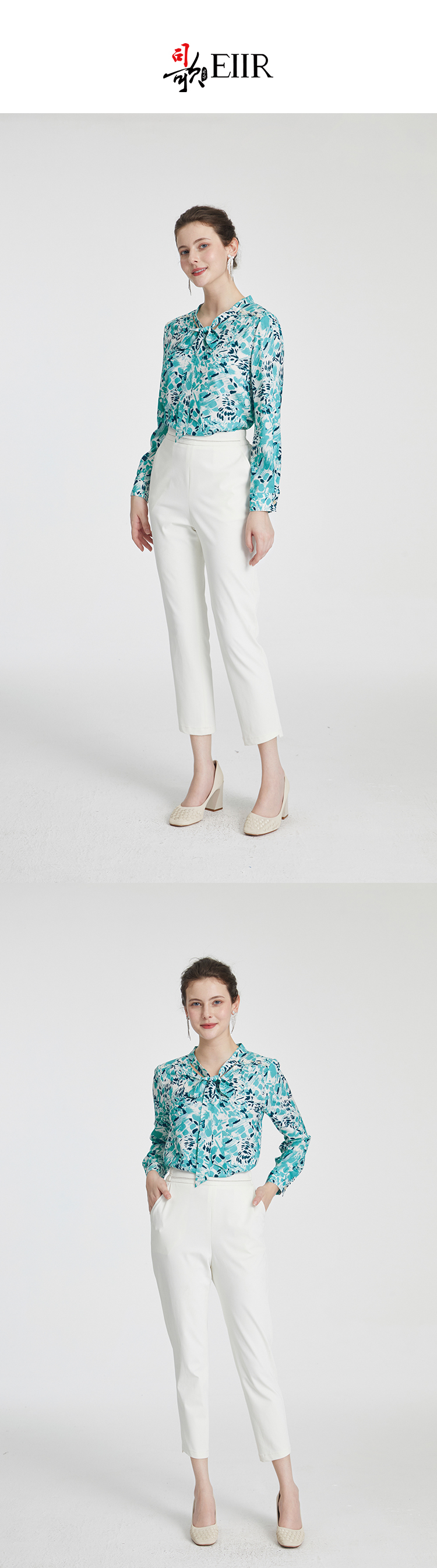 司歌印花长袖上衣蝴蝶结修身光泽T881228