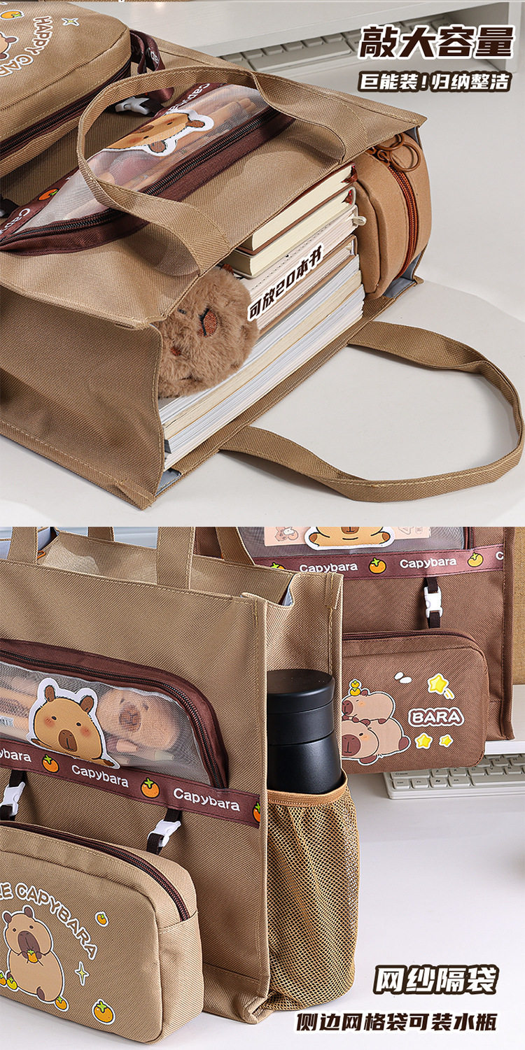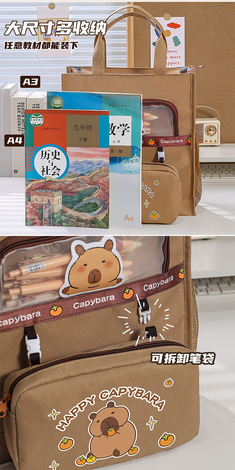 卡皮巴拉A4补习袋高颜值手提帆布包大容量便捷式儿童补课包美术袋