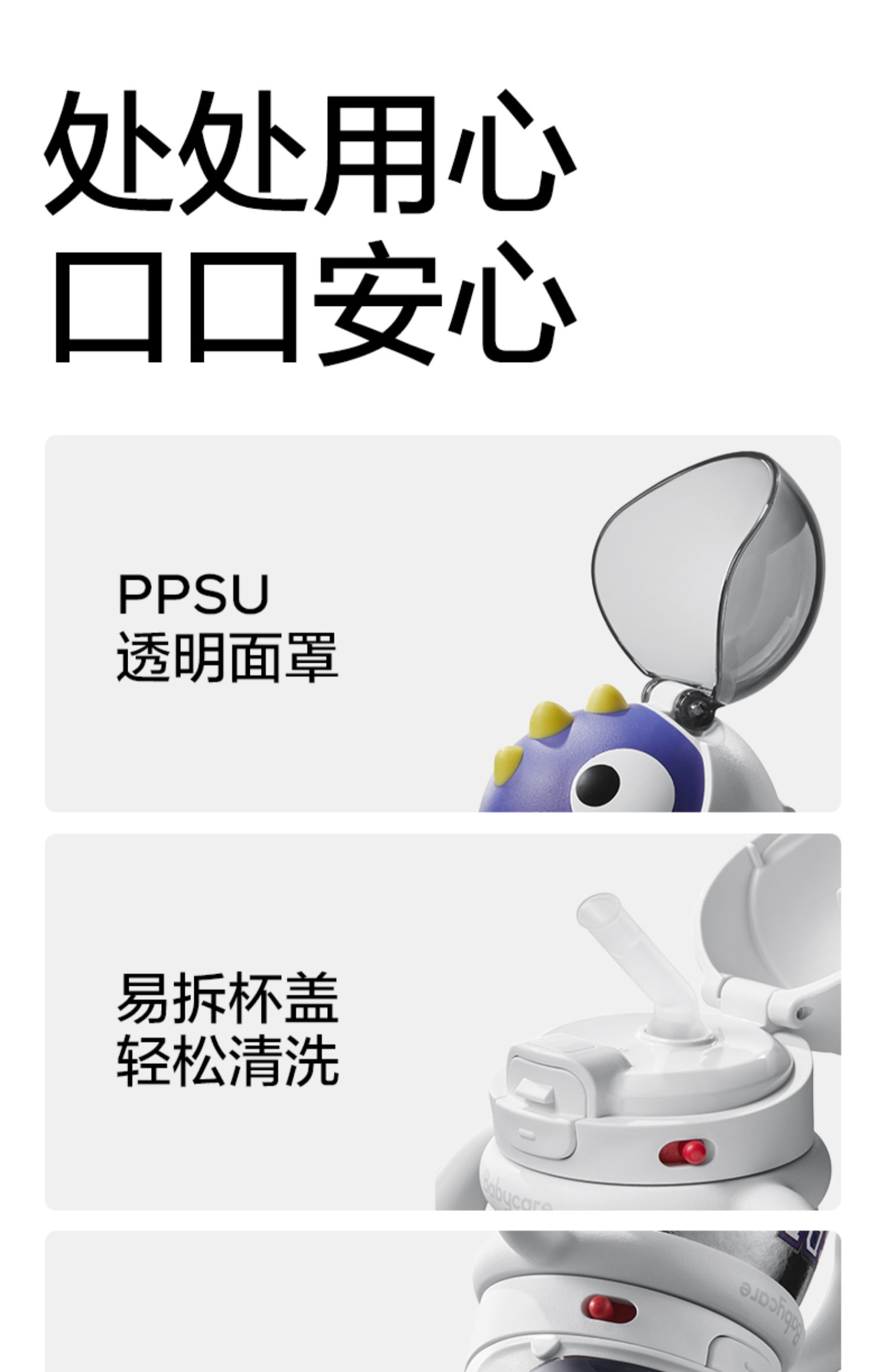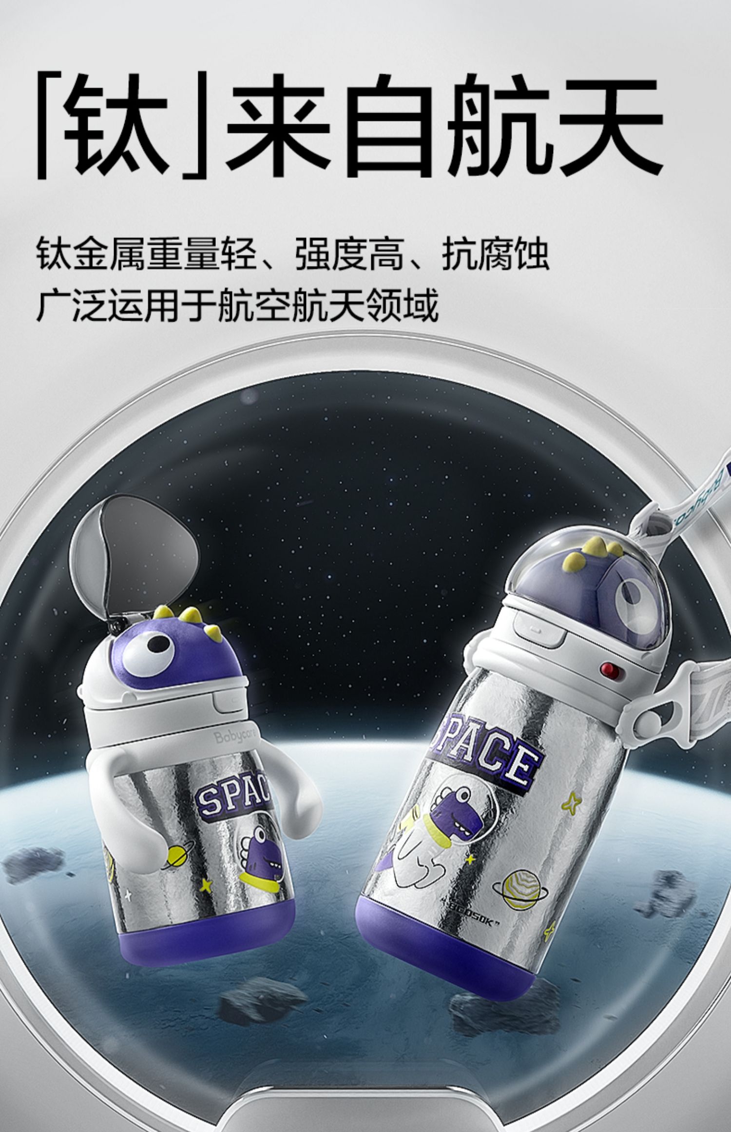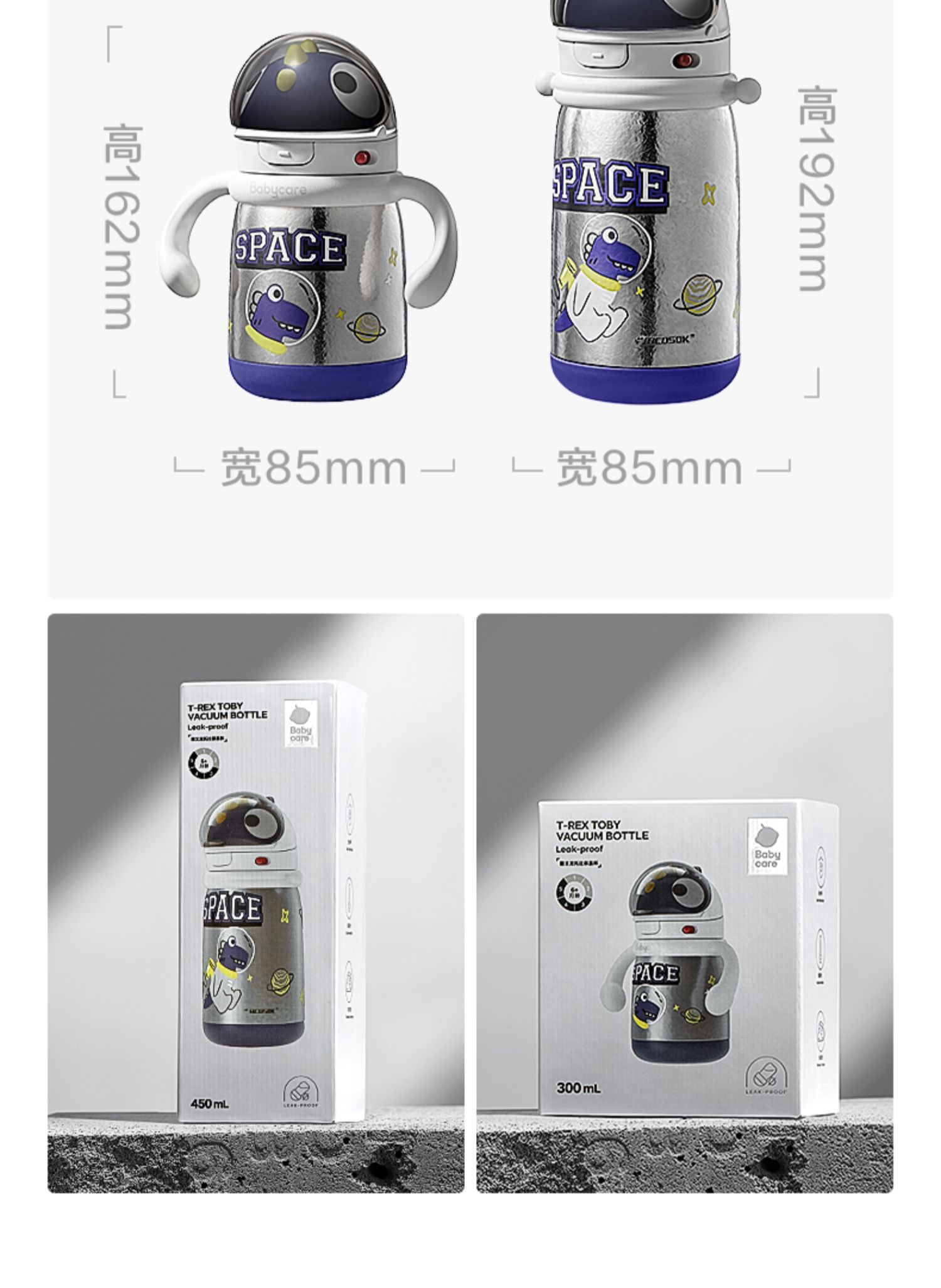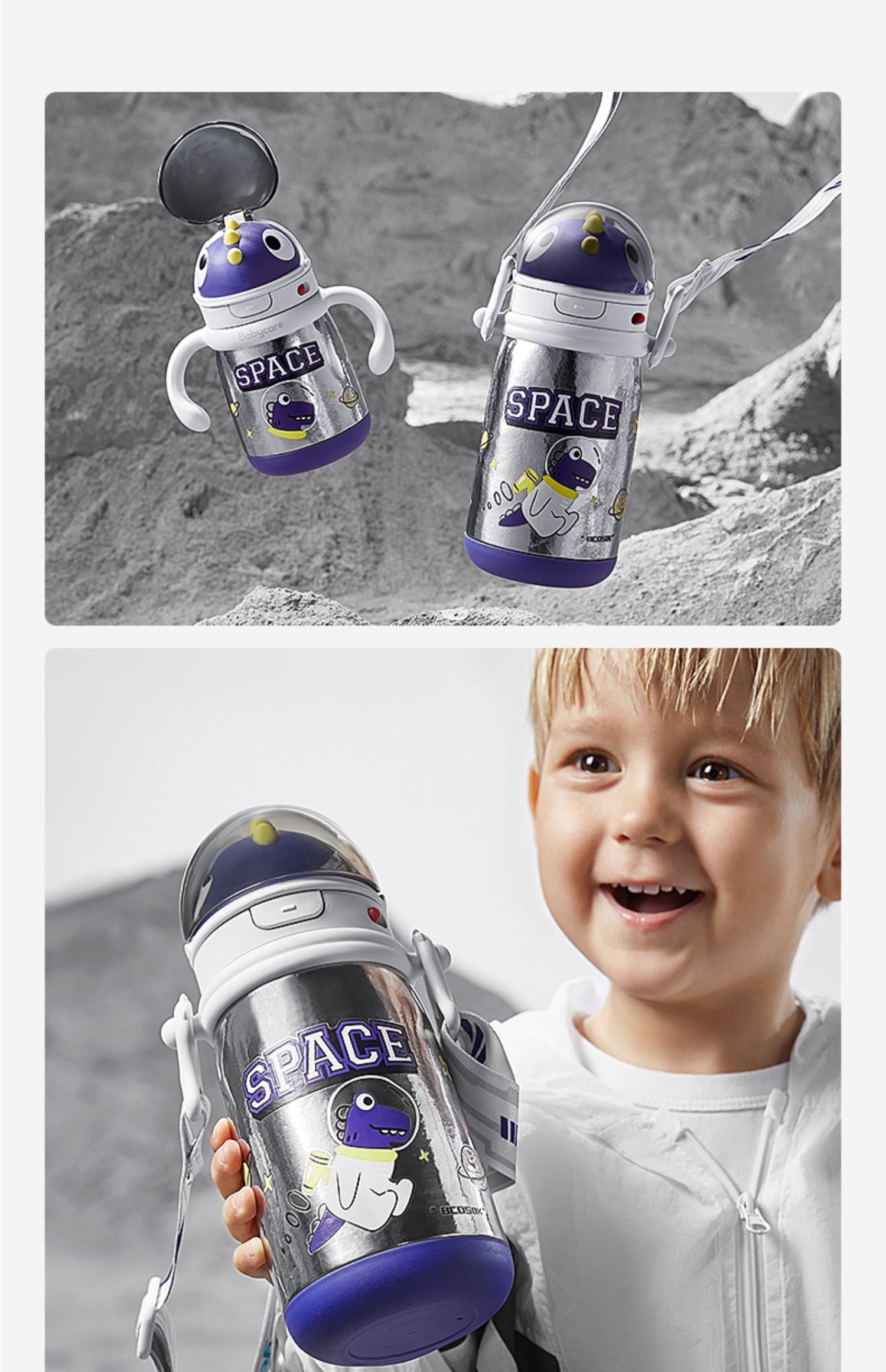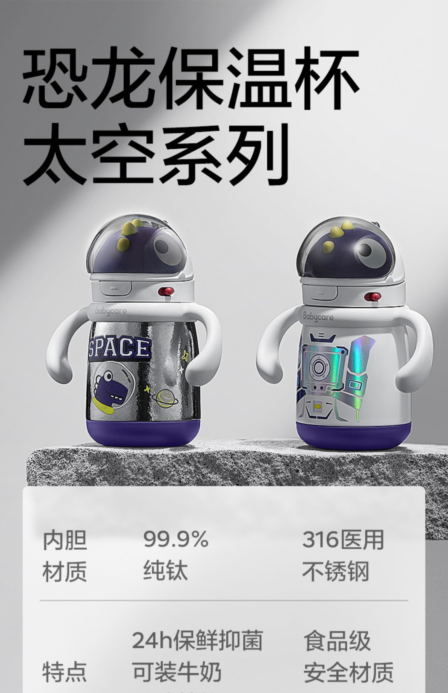 babycare太空恐龙儿童保温杯水杯宝宝吸管杯学饮杯幼儿园喝水壶 BBC-40243